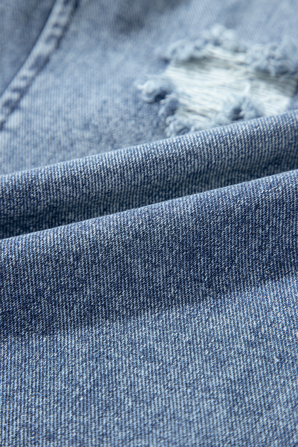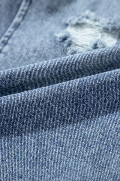 Stone Blue Distressed Bib Pocket Wide Leg Denim Overall