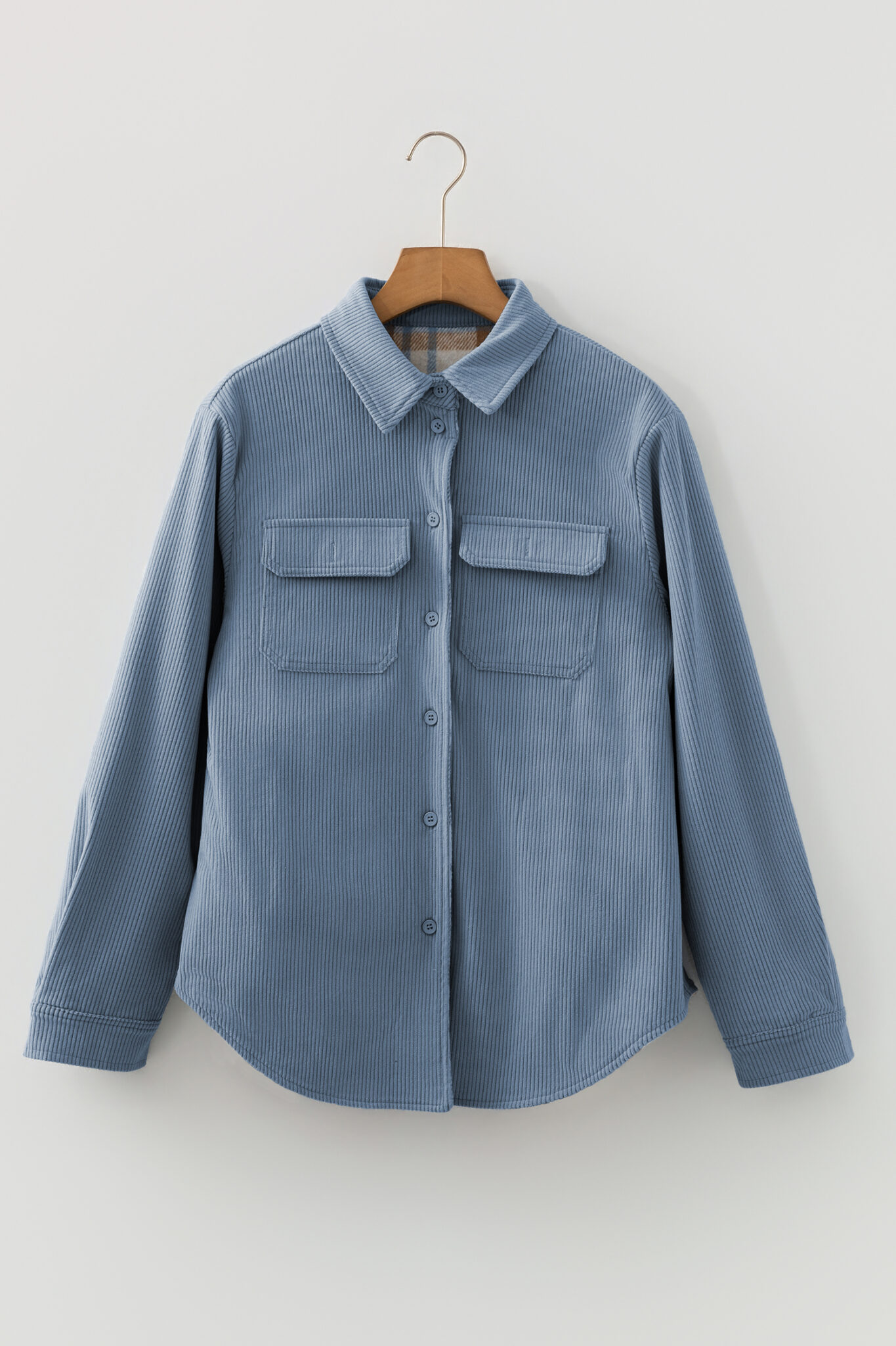 Stone Blue Plaid Corduroy Reversible Button Up Shacket