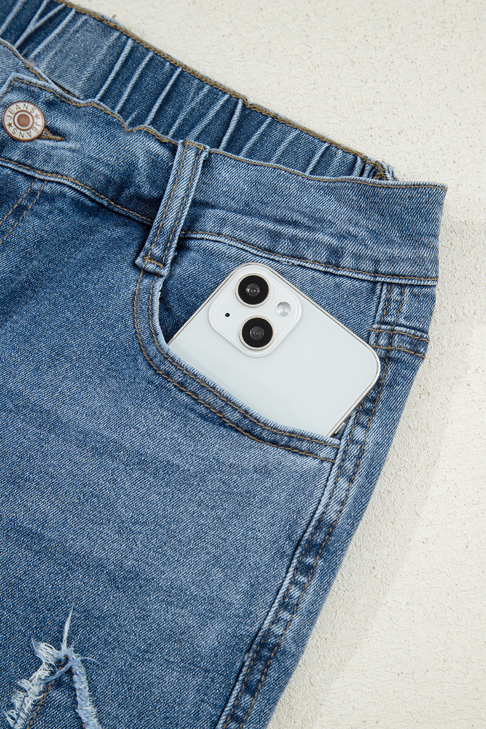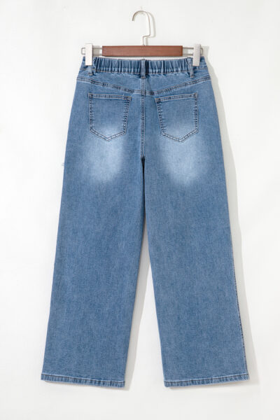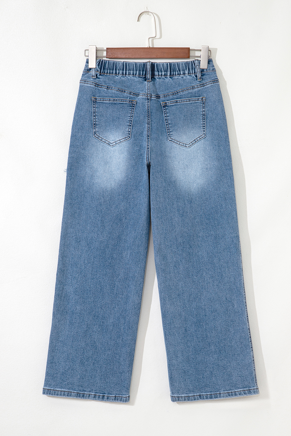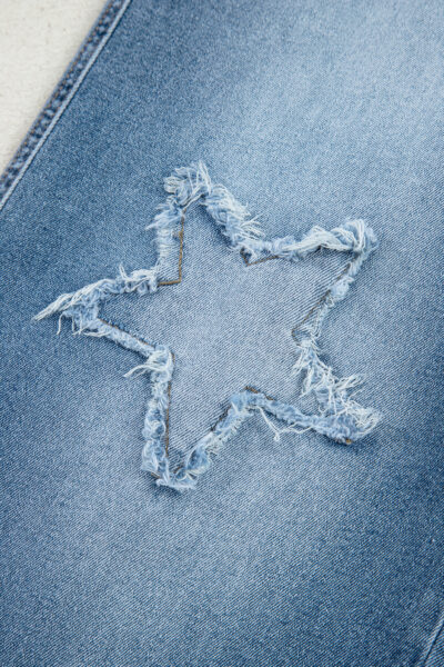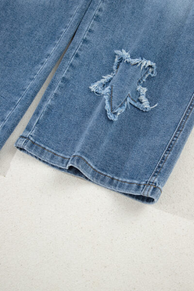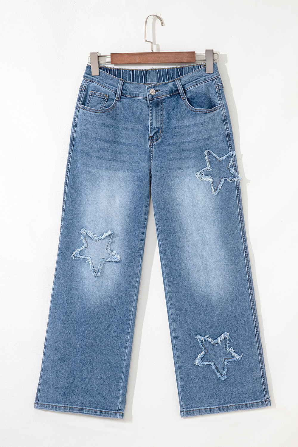 Stone Blue Star Patchwork Cropped Wide Leg High Waist Jeans