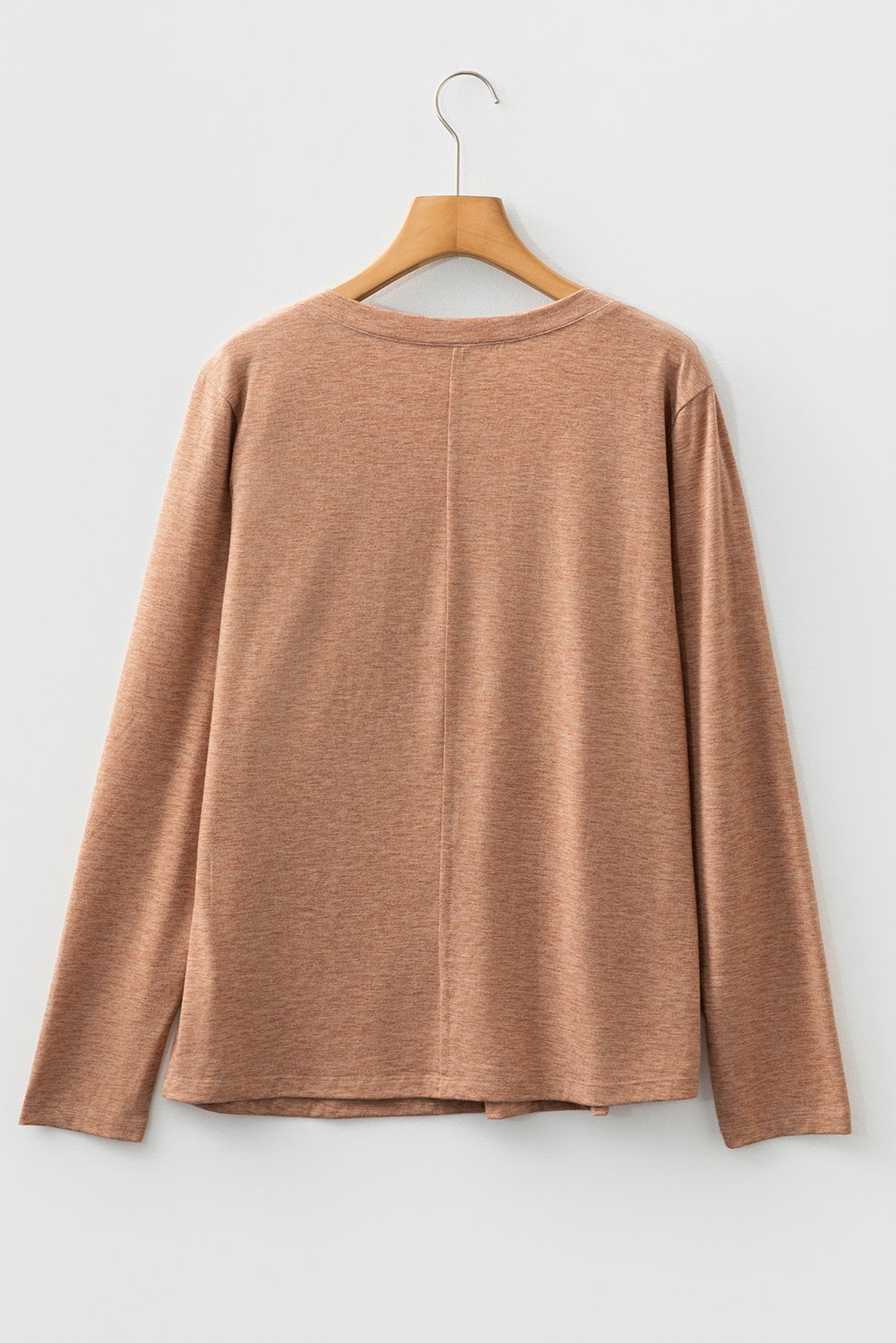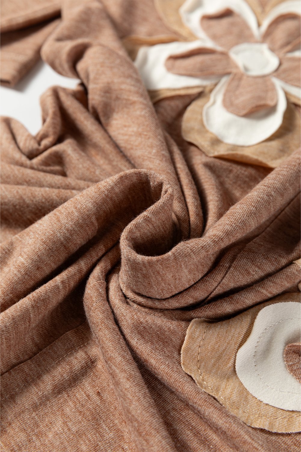 Straw Yellow Floral Patchwork V Neck Long Sleeve T Shirt