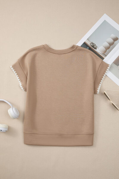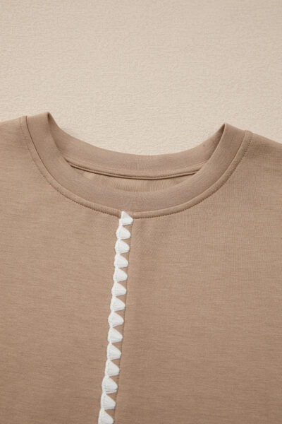 Straw Yellow Ric Rac Color Contrast Ribbed Edge Crewneck T Shirt