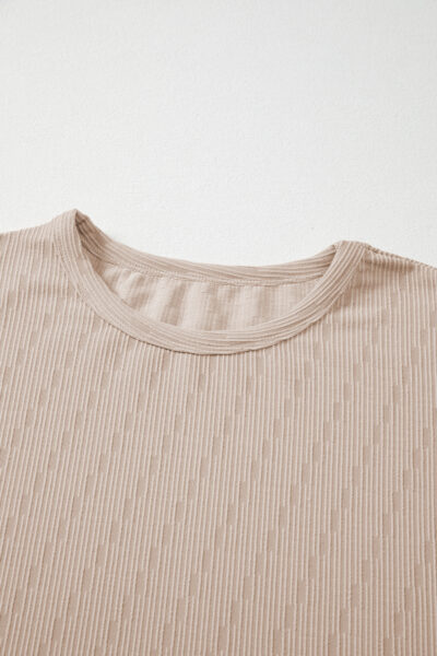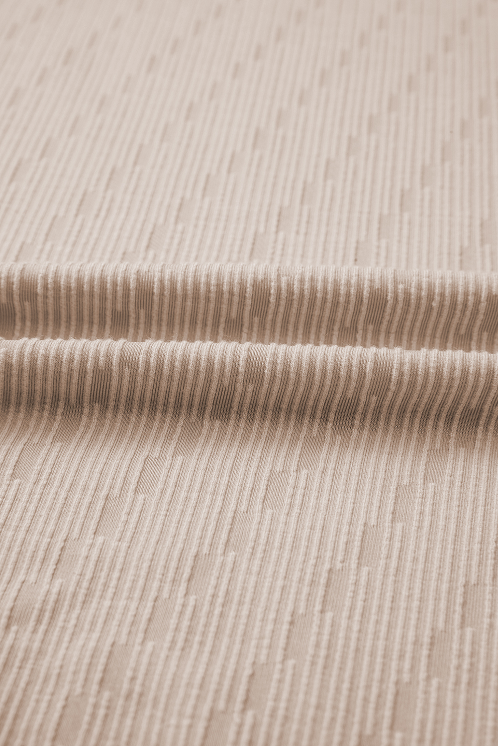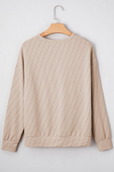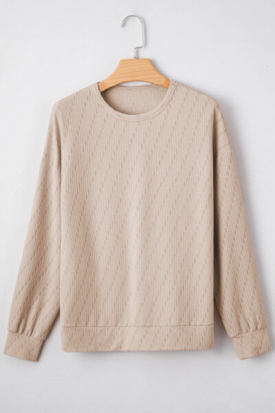 Straw Yellow Solid Color Textured Long Sleeve Top
