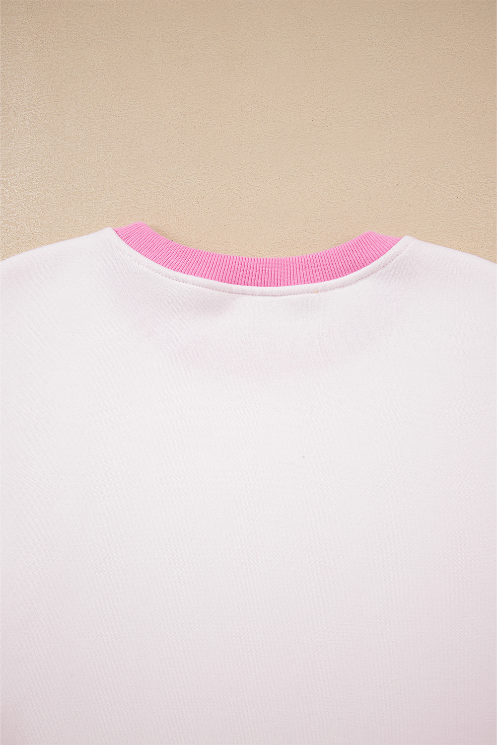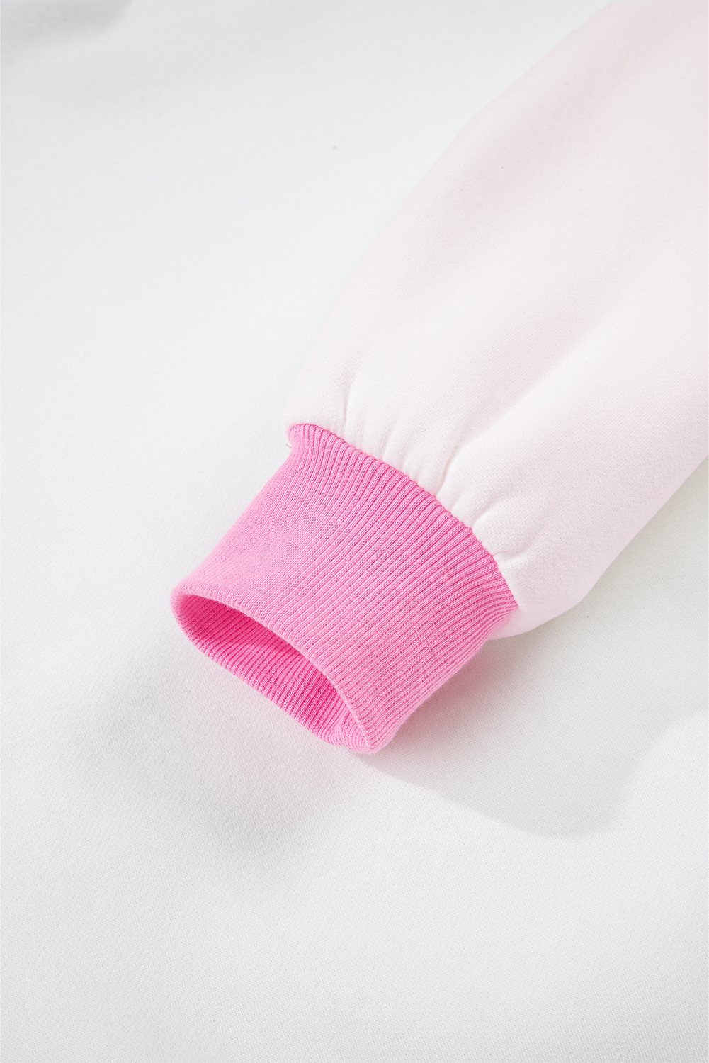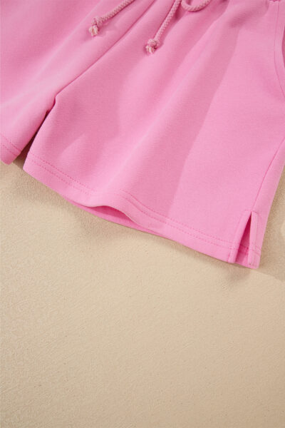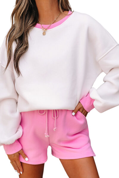 Strawberry Pink Color Block Pullover and Lace-up Elastic Waist Shorts Set