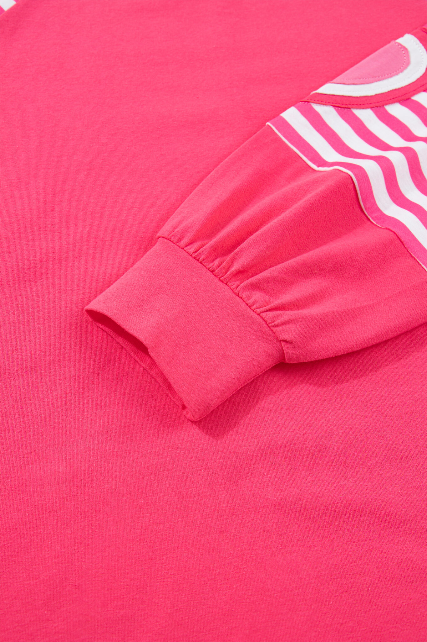 Strawberry Pink Heart Shape Striped Patchwork Long Sleeve Loose Top