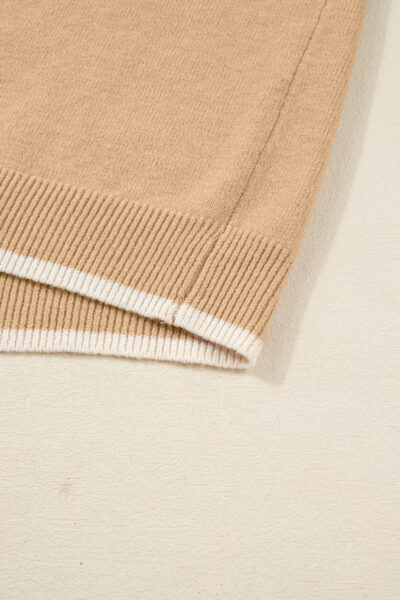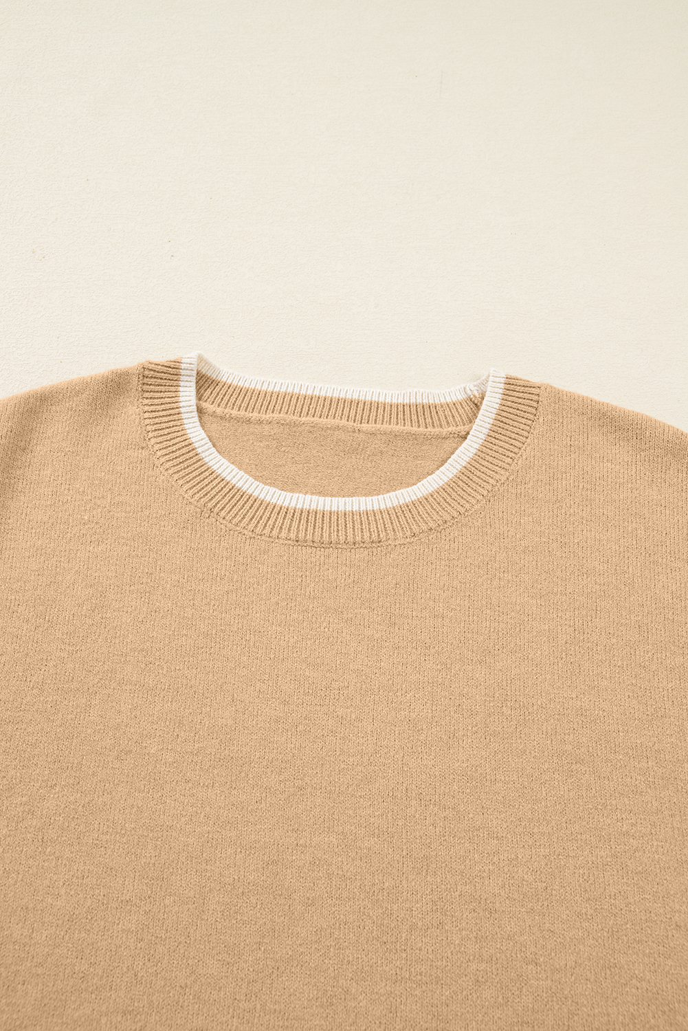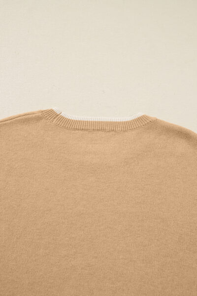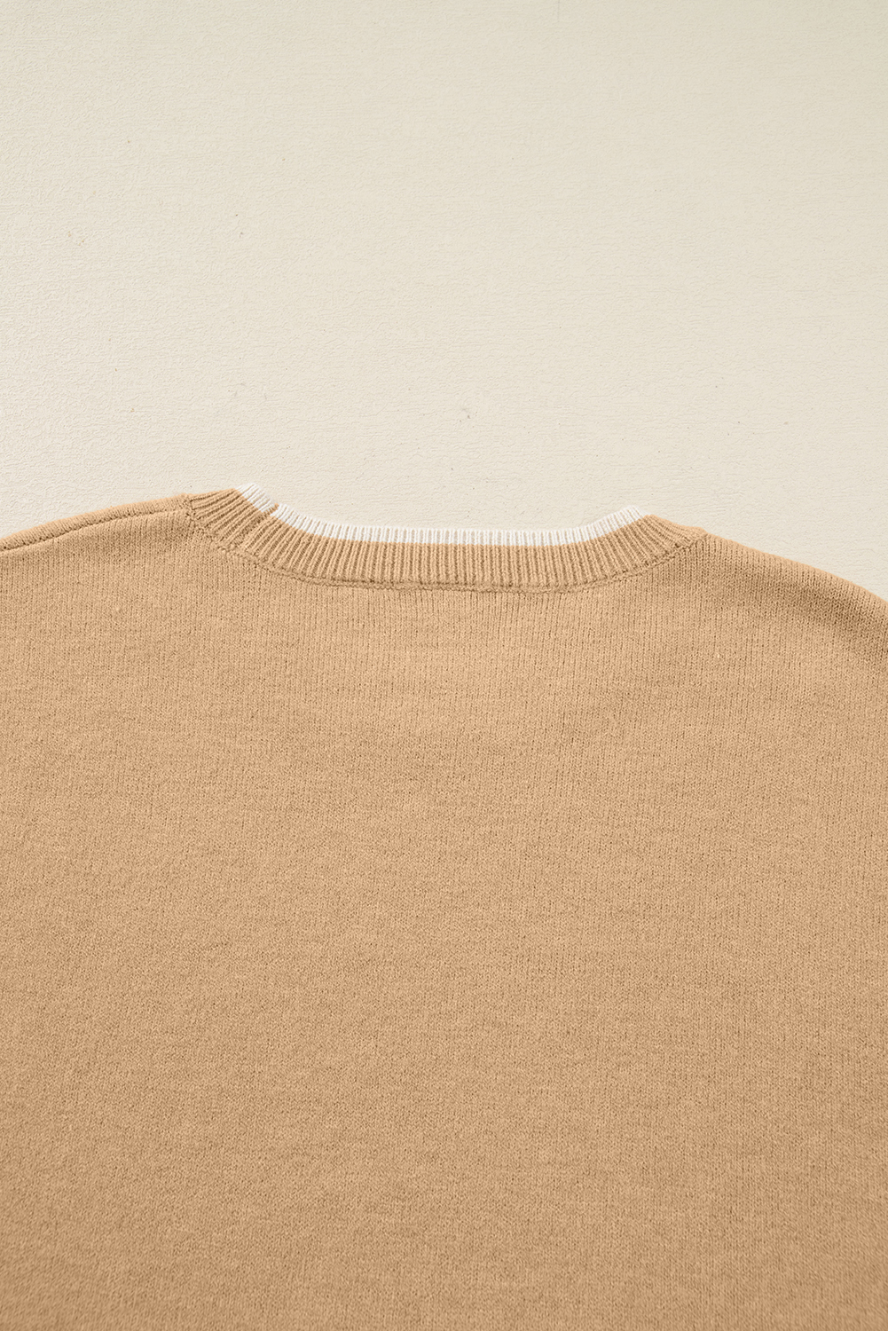 Tan Plus Size Leopard Bow Decor Split Cuffs Loose Sweater