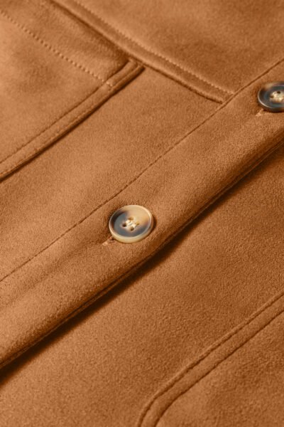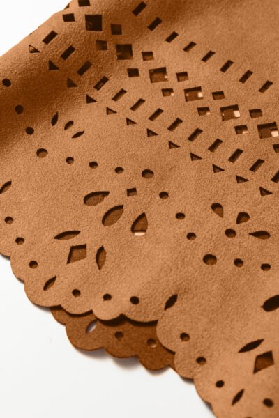 Thai Curry Solid Color Faux Suede Hollowed Detail Retro Style Jacket