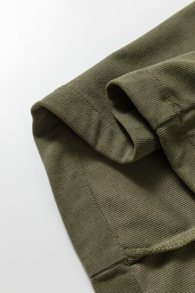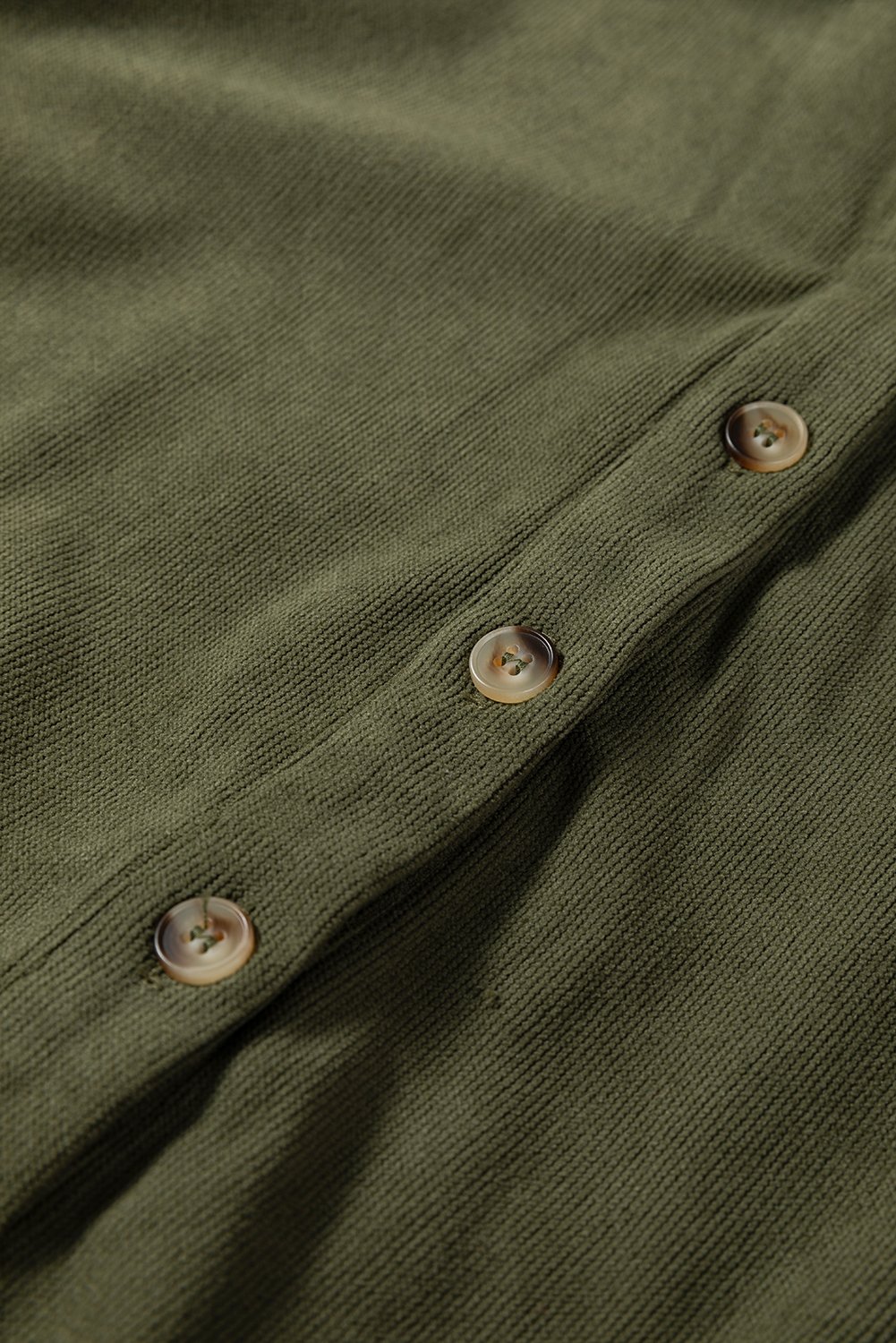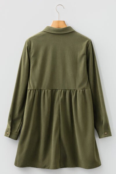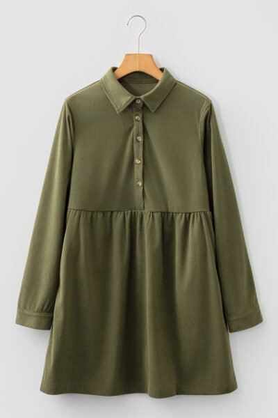 Vineyard Green Corduroy Half Button Collared Long Sleeve Mini Dress