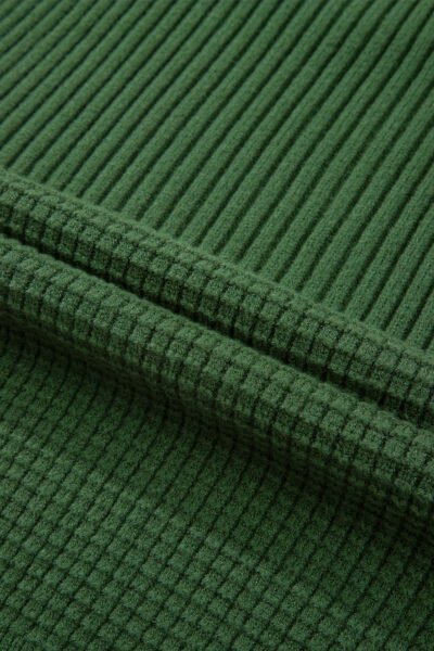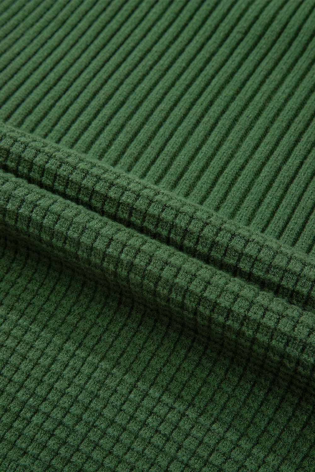 Vineyard Green Solid Color Mixed Textured Knitted Crew Neck Sweater