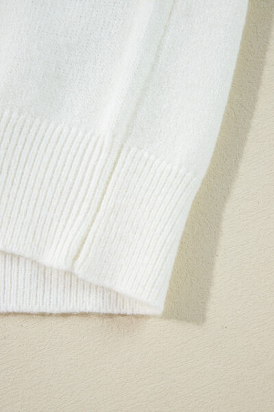 White Big Flower Pattern V Neck Drop Shoulder Sweater