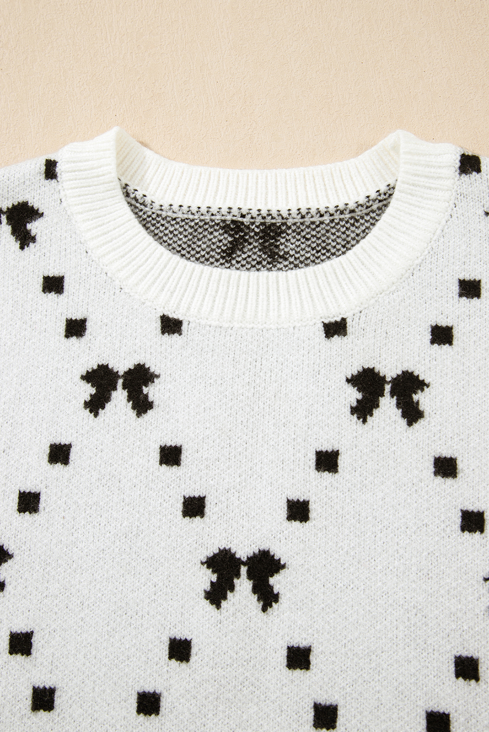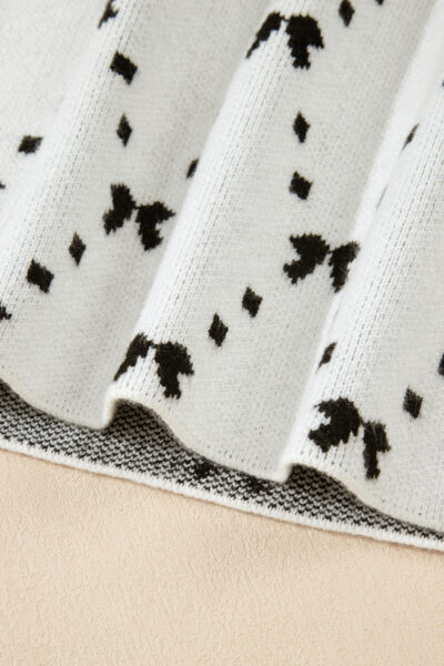 White Bow Pattern Buttoned Side Cropped Sweater Vest