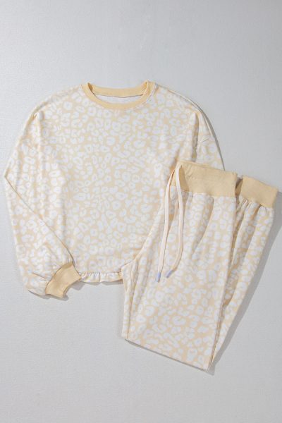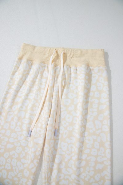 White Cheetah Print Two Piece Loose Fit Cozy Loungewear