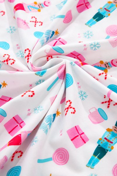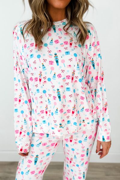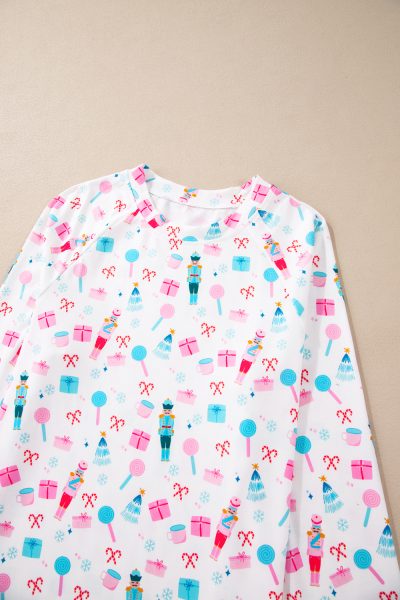 White Christmas Pattern Long Sleeve Top and Wide Leg Pants Set