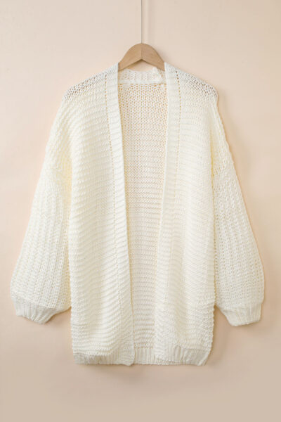 White Chunky Oversize Knit Drop Shoulder Puff Sleeve Cardigan