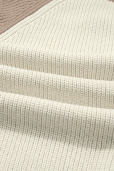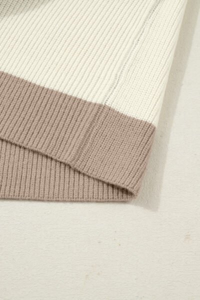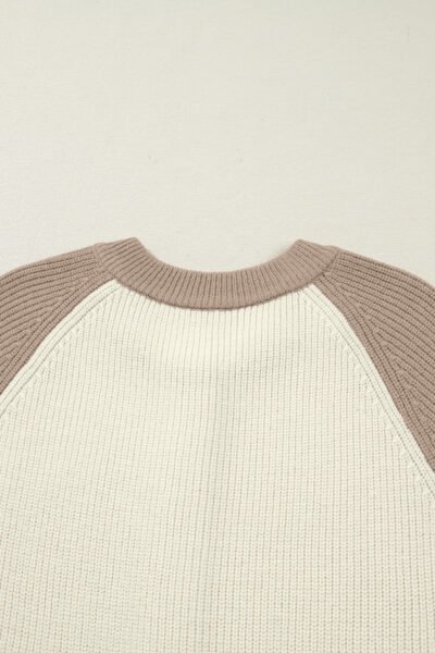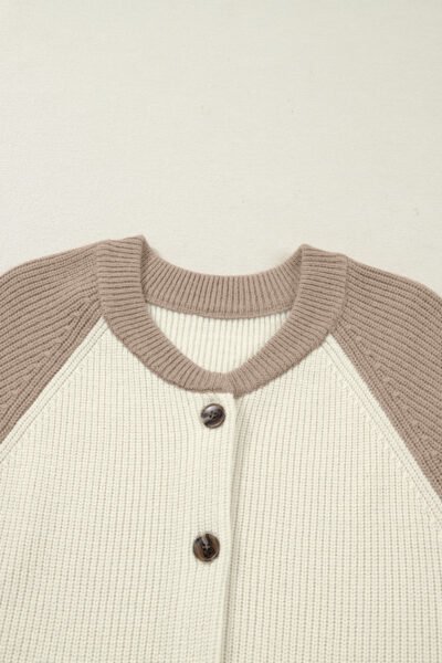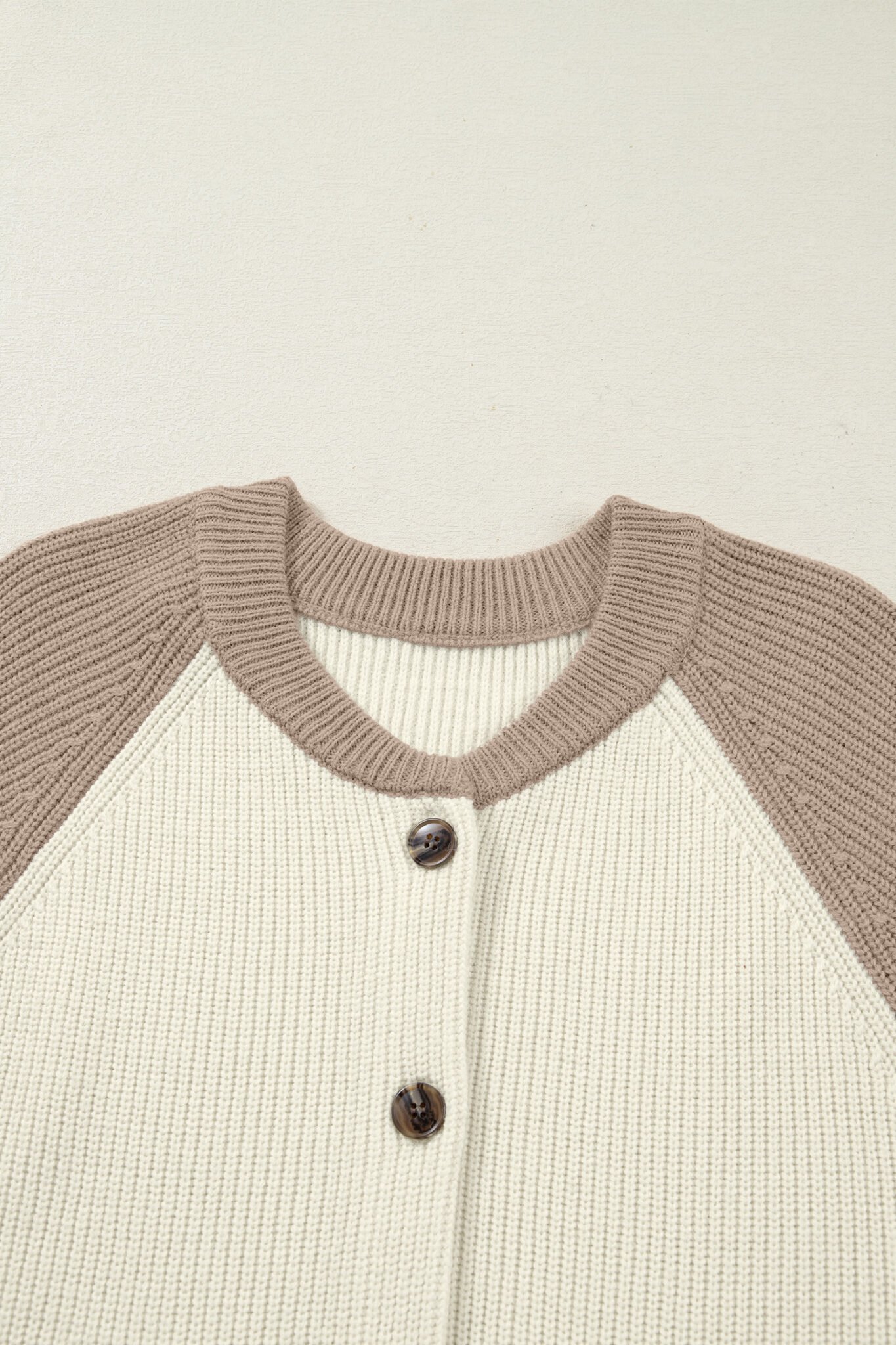 White Color Block Ribbed Knit Button Down Sweater Cardigan