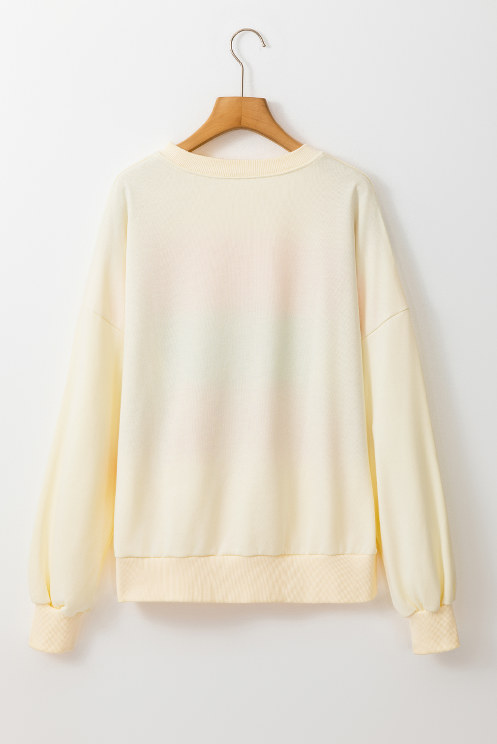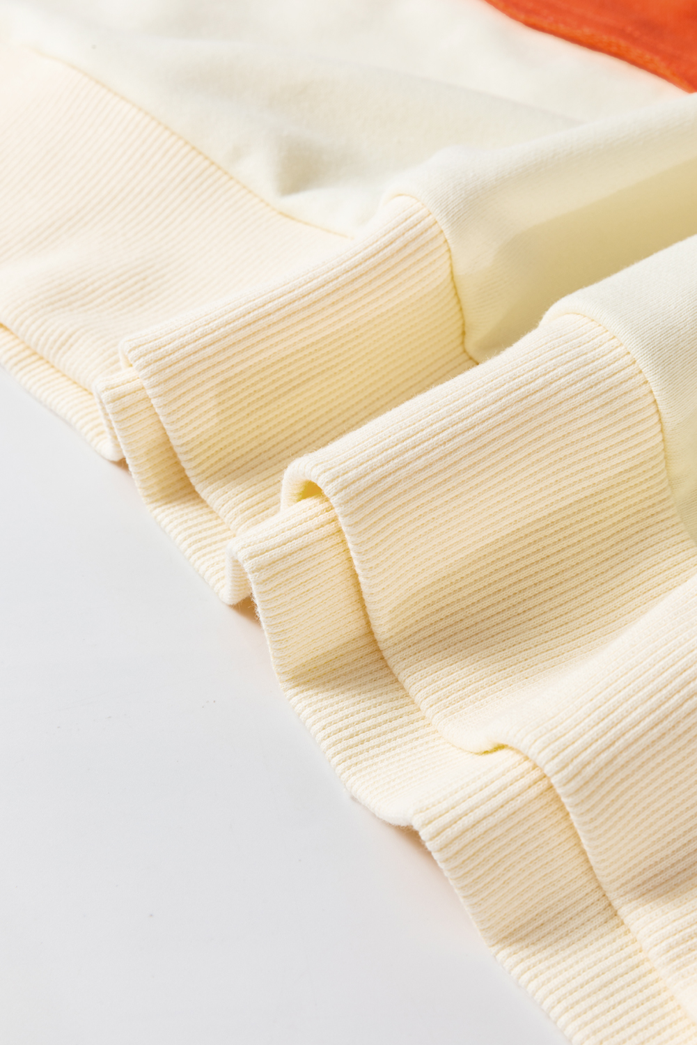 White Colorblock Patchwork Crewneck Drop Shoulder Sweatshirt