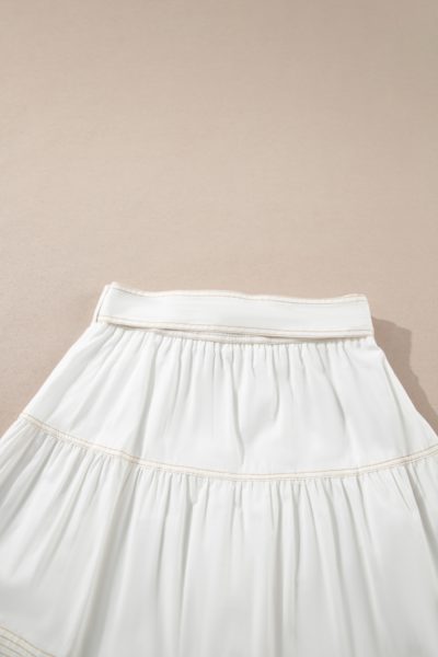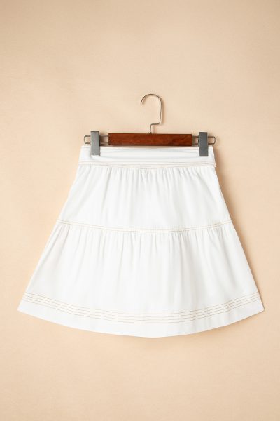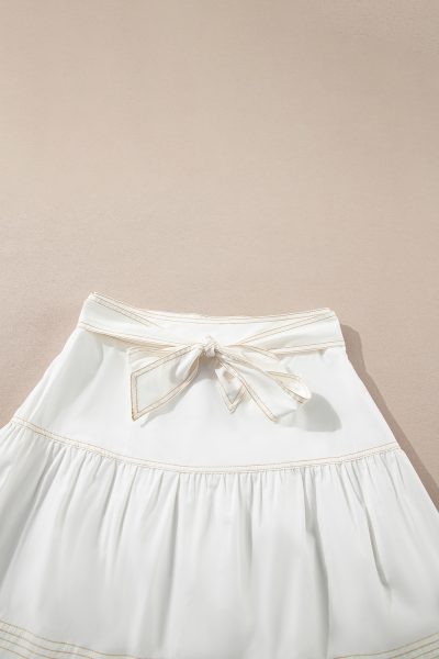 White Contrast Stitching Trim Knotted High Waist A-Line Mini Skirt