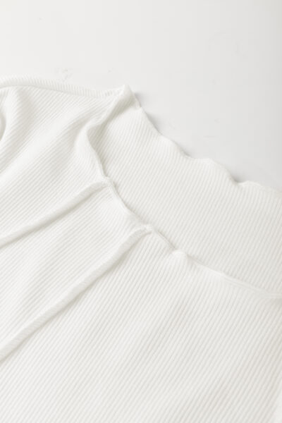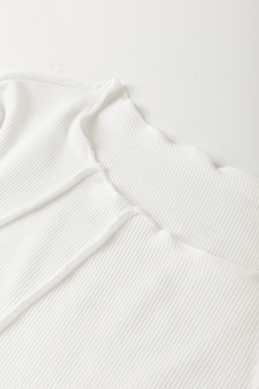 White Exposed Seam Ribbed Knit Slim Fit Long Sleeve Top