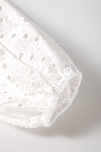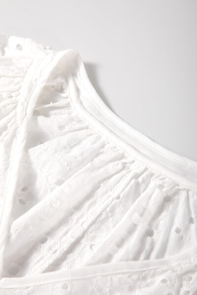 White Eyelet Embroidered Puff Sleeve V Neck Blouse