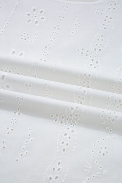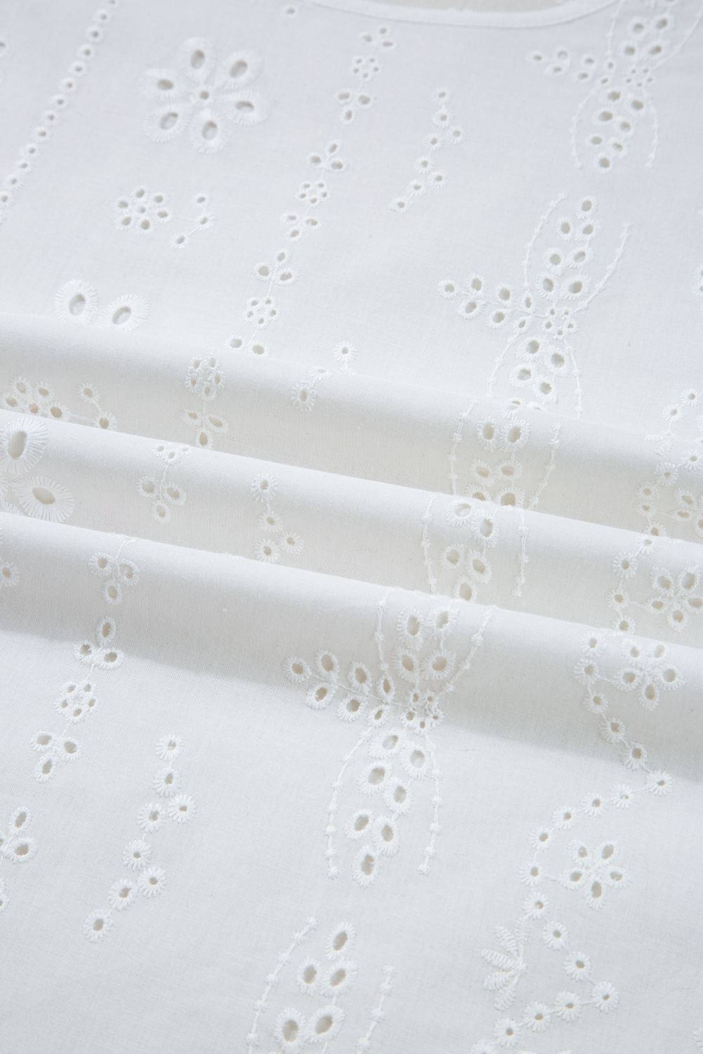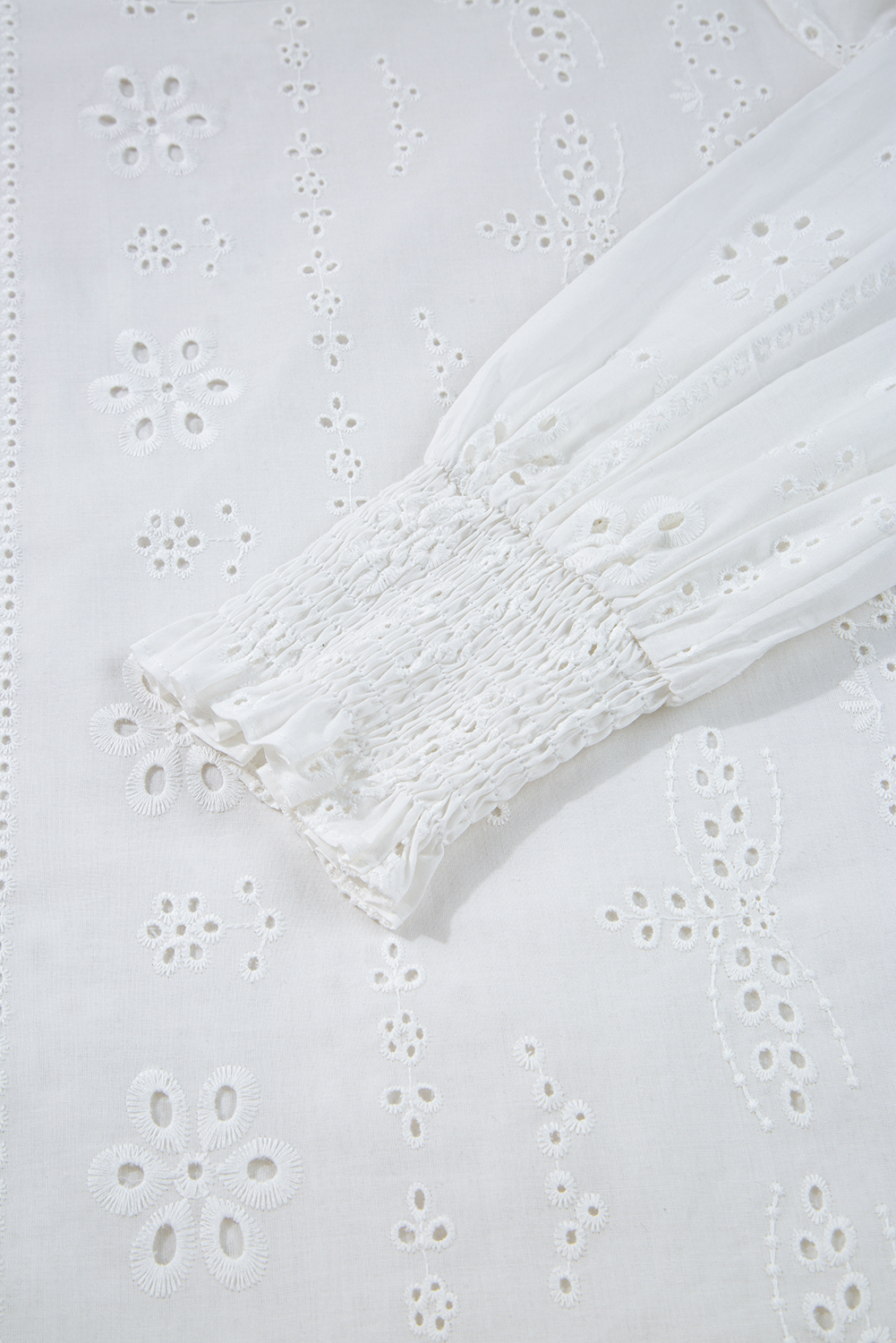 White Eyelet Embroidered Smocked Cuff Sheer Blouse