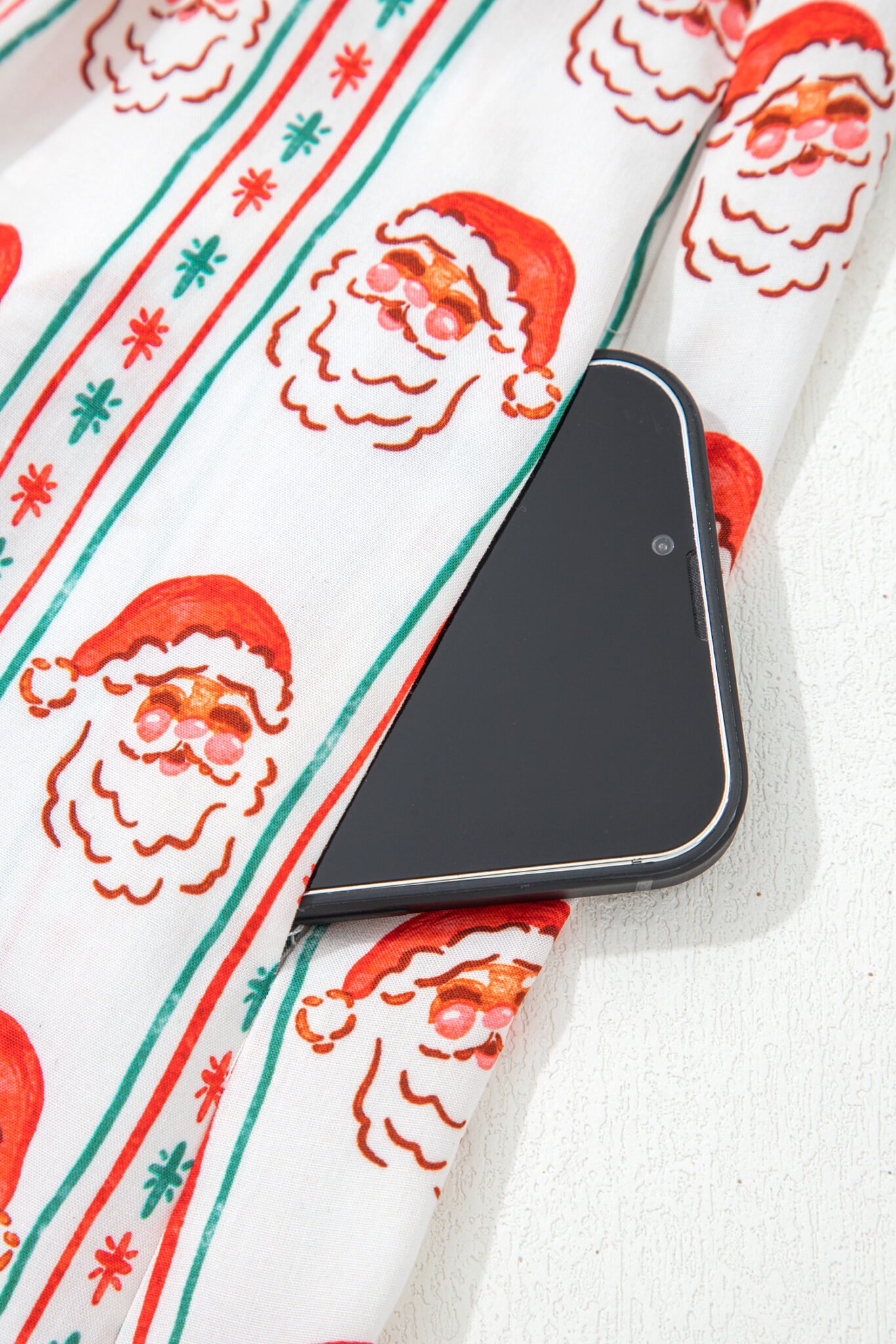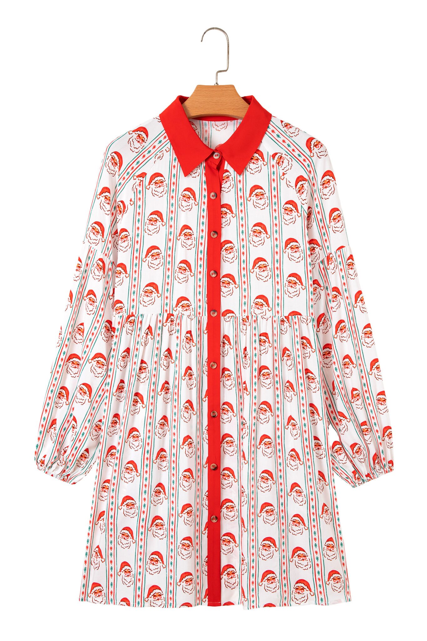 White Father Christmas Contrast Collar Button Front Long Sleeve A-line Mini Dress