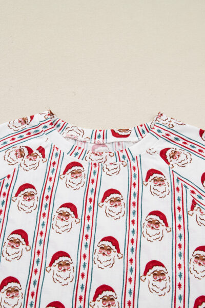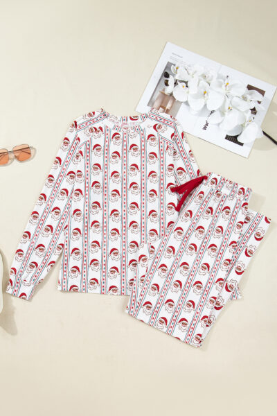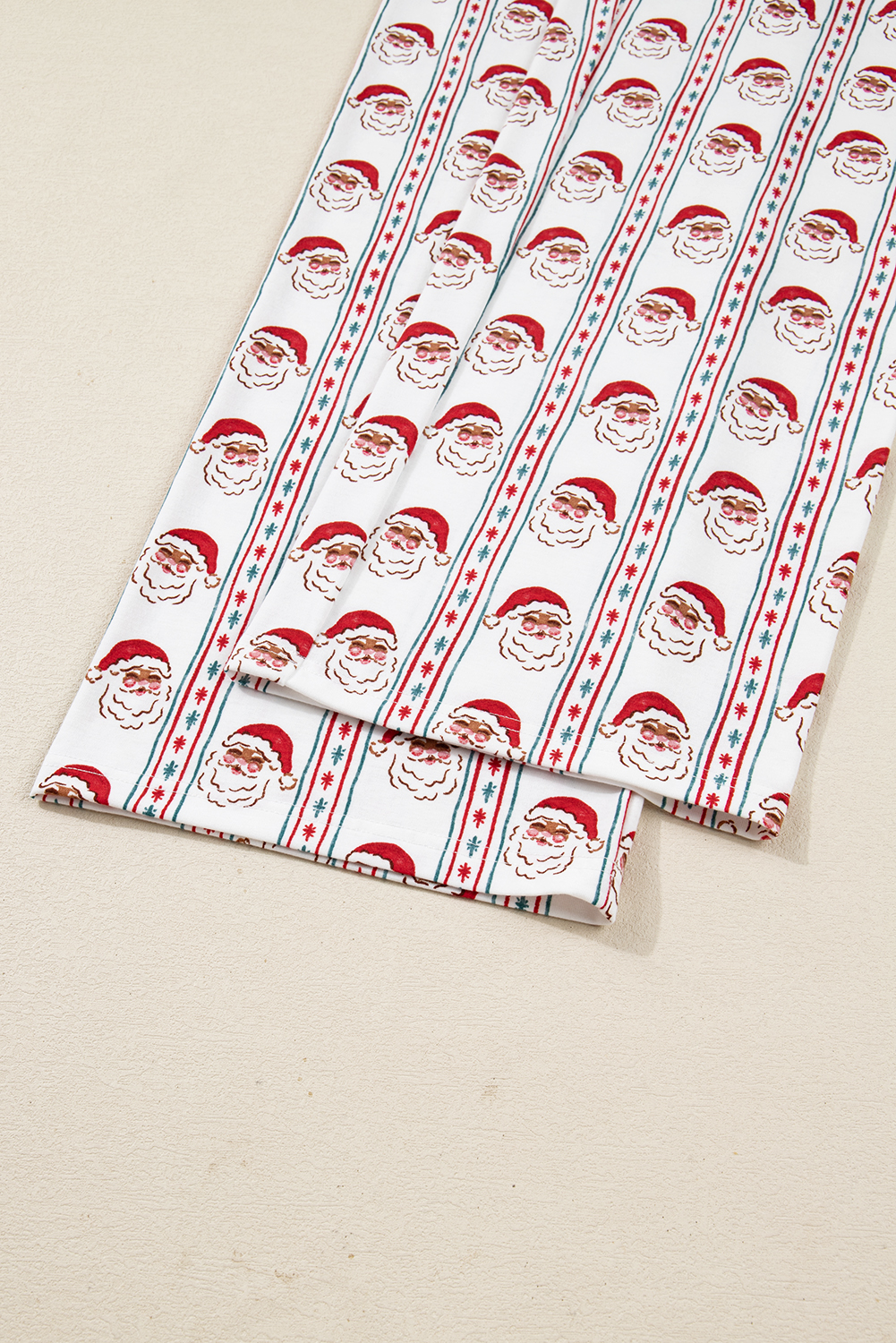 White Father Christmas Striped Print Contrast Drawstring Lounge Pant Set