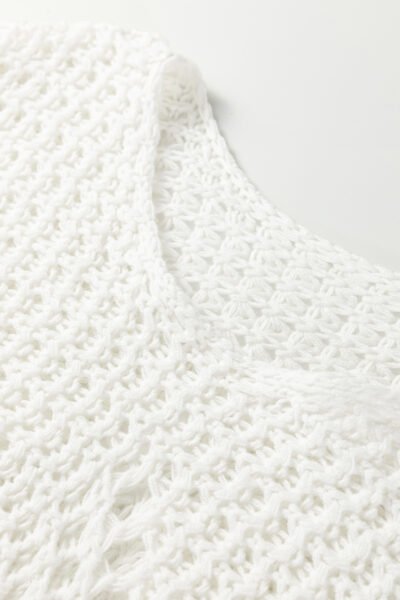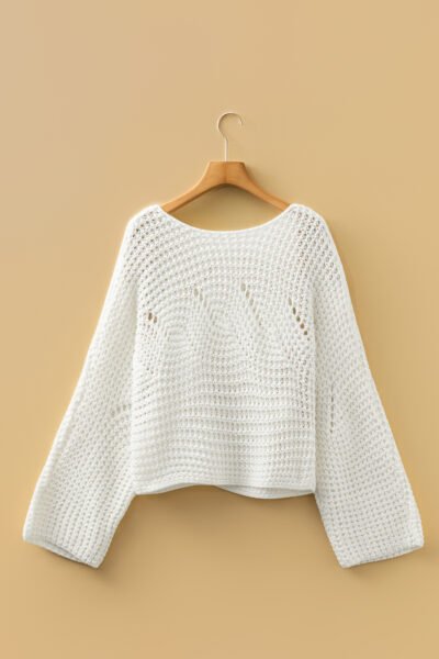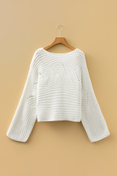 White Hollowed Detail Wide Sleeve Loose Pullover Sweater