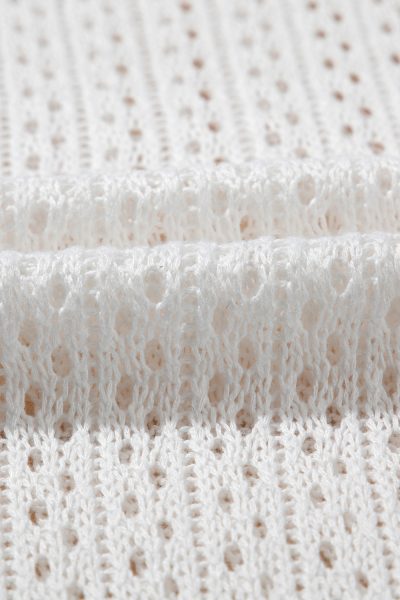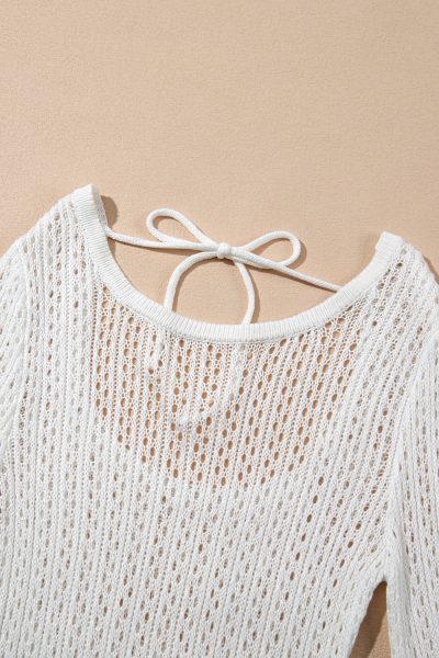 White Hollowout Knit Bell Sleeve Drawstring Short Beach dress