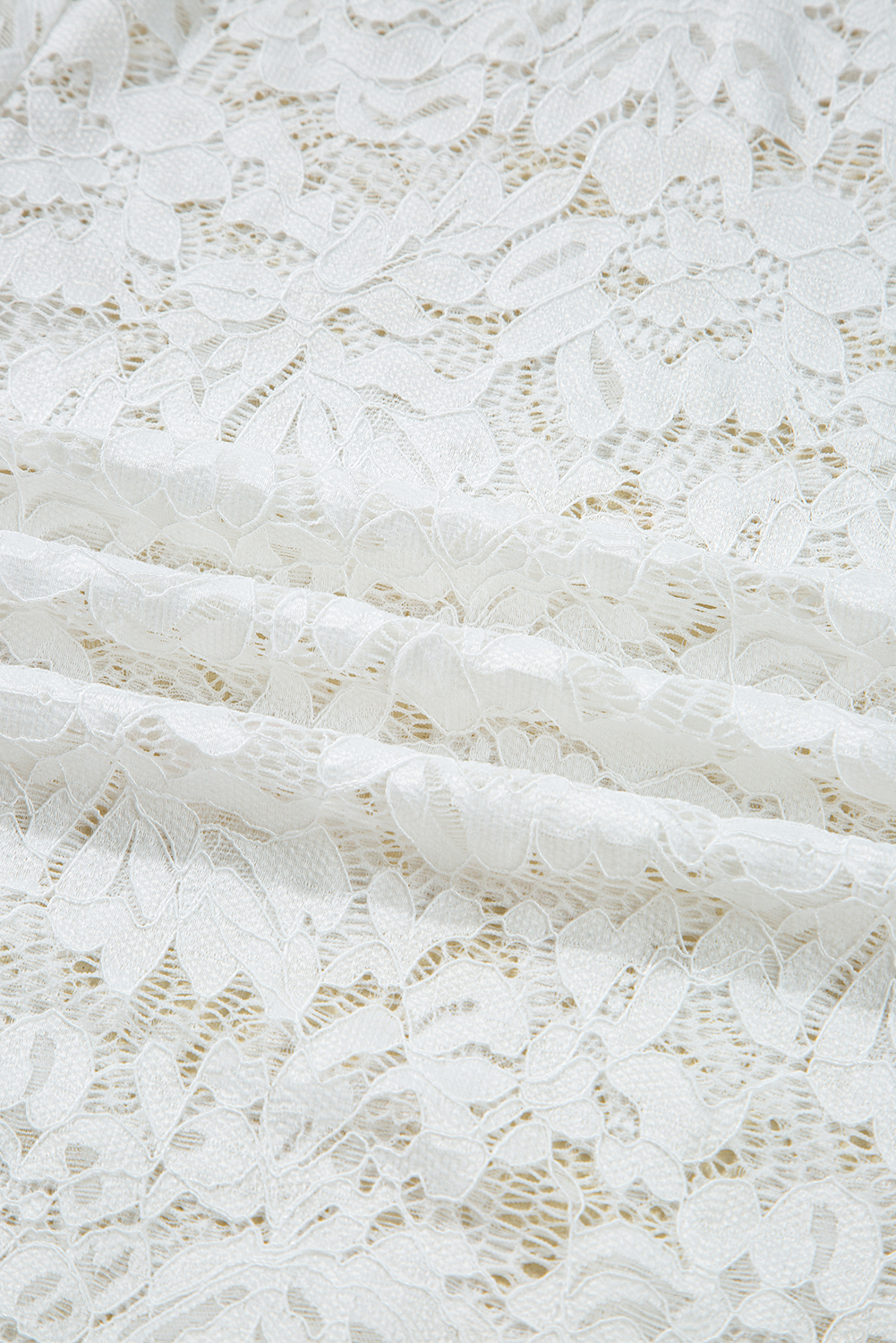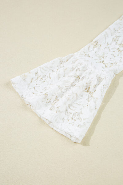 White Lace Crochet Bell Sleeve Mock Neck Blouse