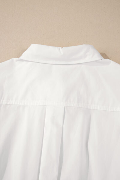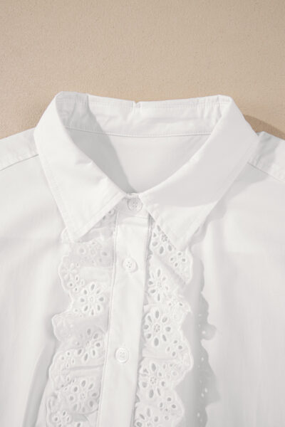 White Lace Crochet Trim Turn Down Collar Buttoned Shirt