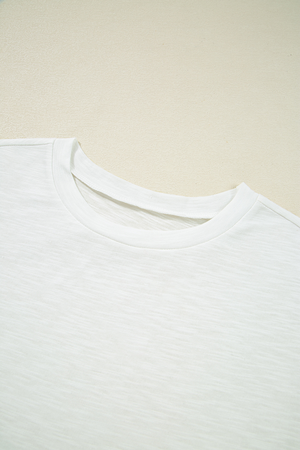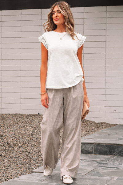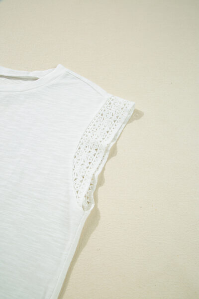 White Lace Patchwork Cap Sleeve Round Neck T Shirt