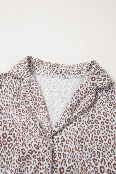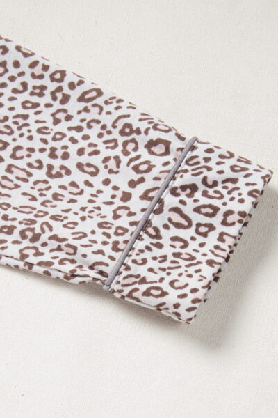 White Leopard Print Long Sleeve and Pants Pajamas Set