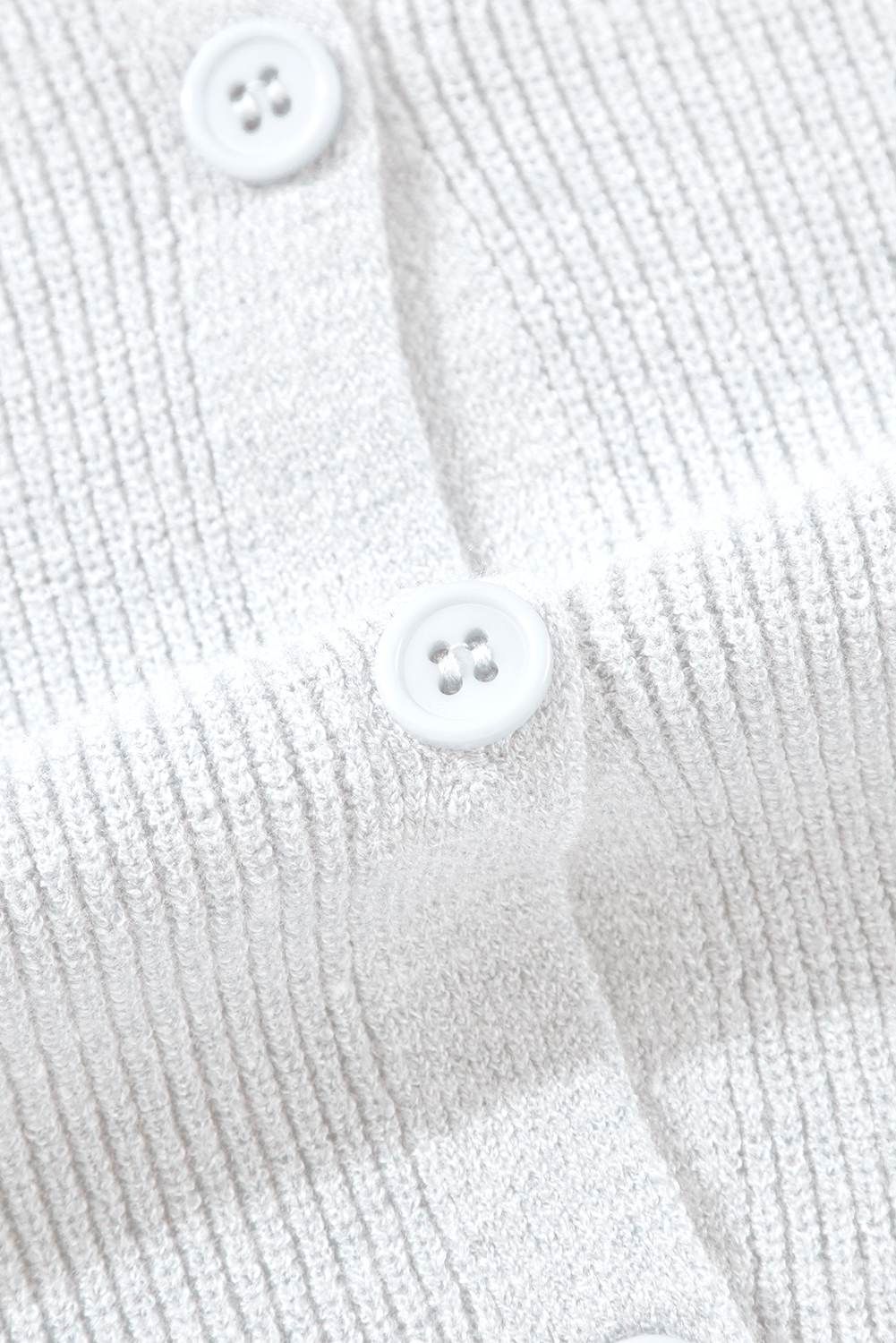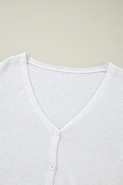White Lightweight Ribbed Knit Button Front V Neck Cardigan