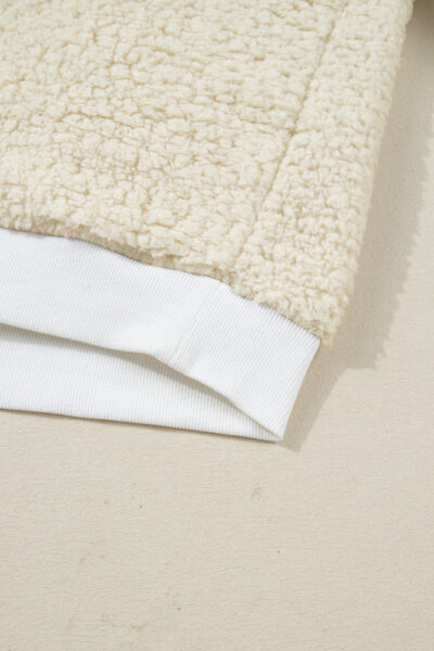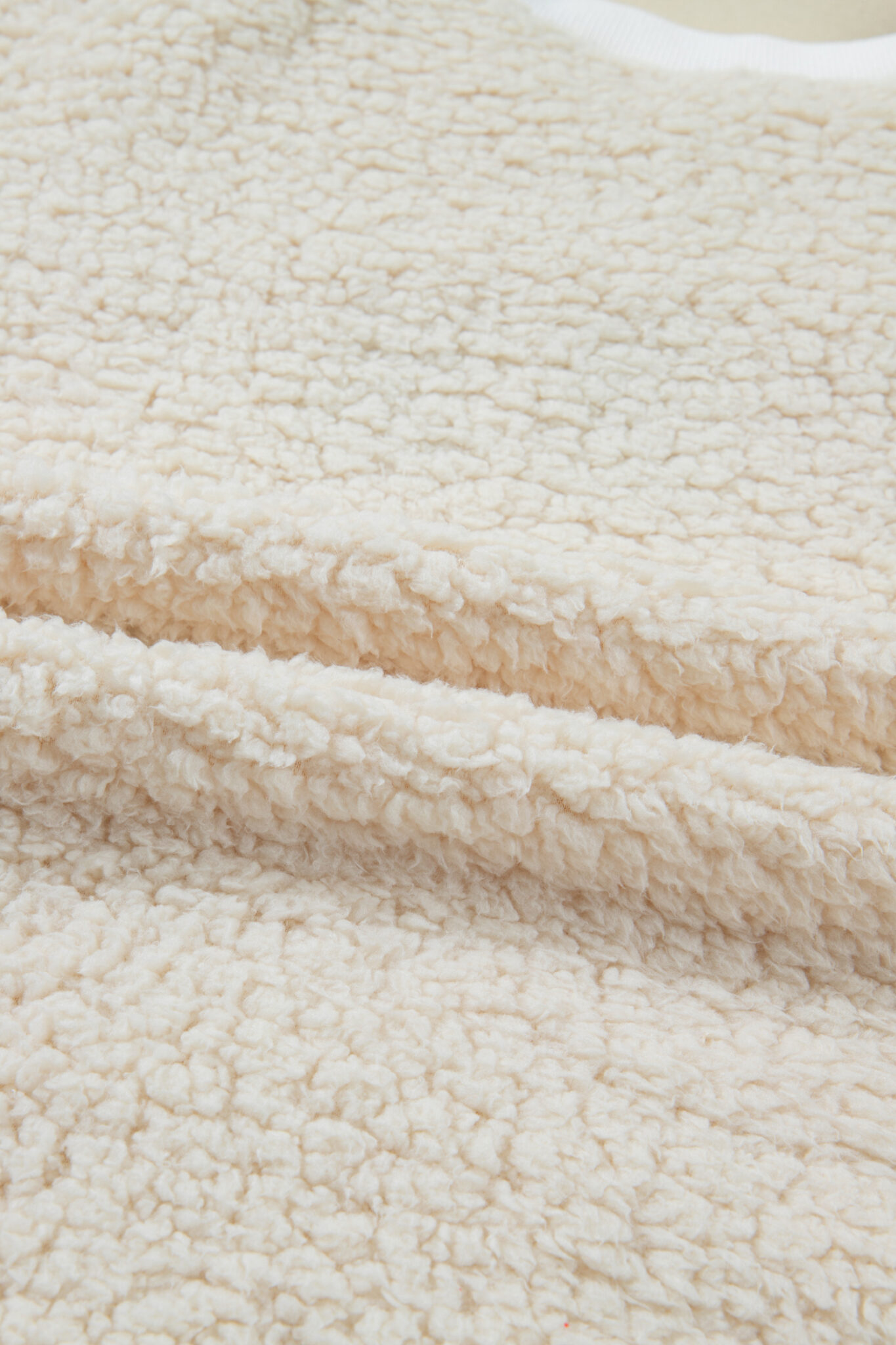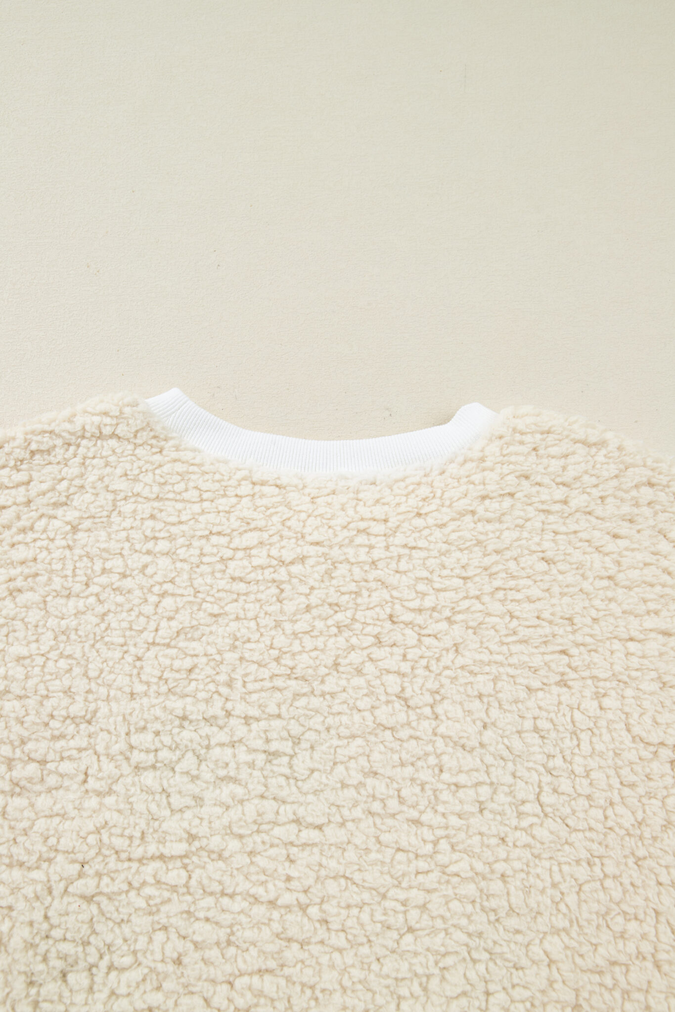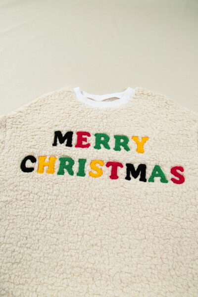 White MERRY CHRISTMAS Multicolor Embroidered Sherpa Pullover Sweatshirt