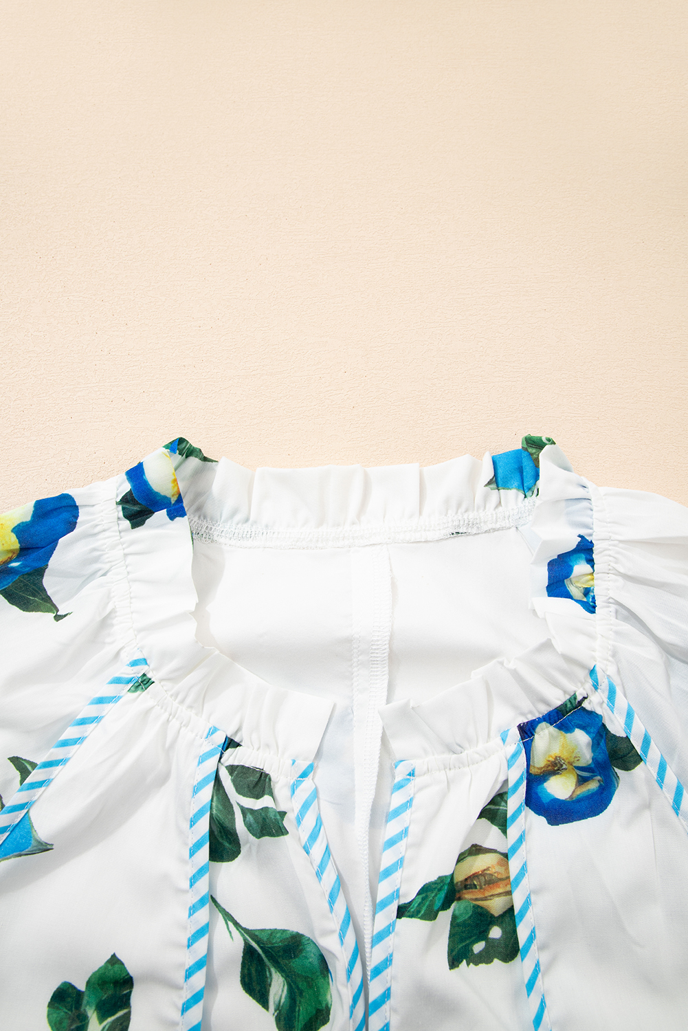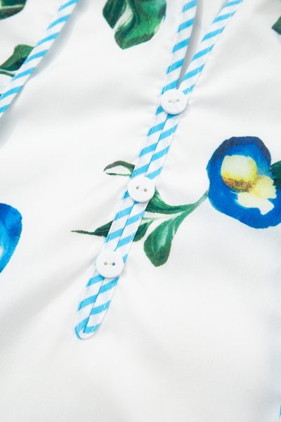 White Plus Size Floral Short Puff Sleeve Contrast Tie V Neck Dress