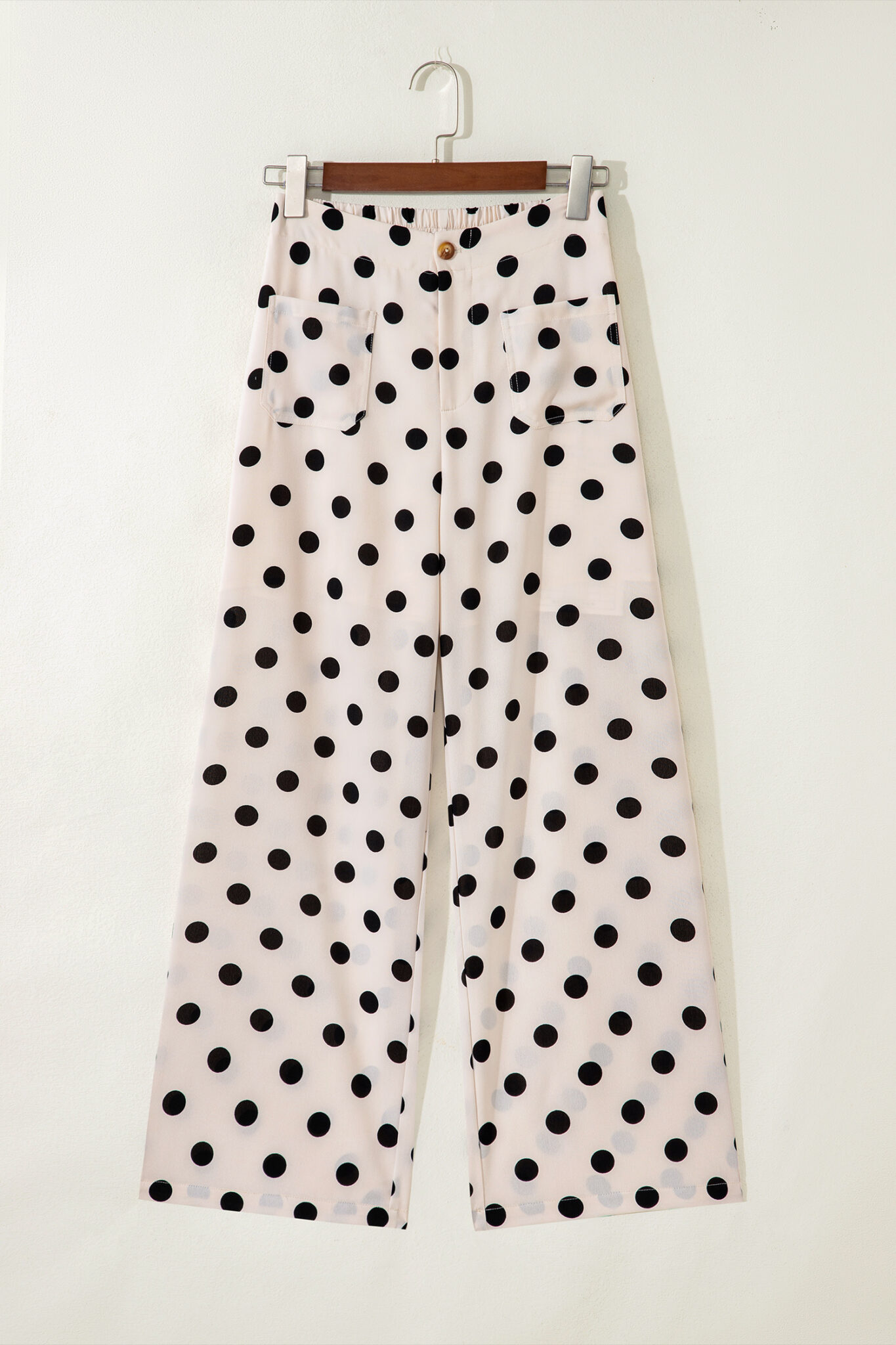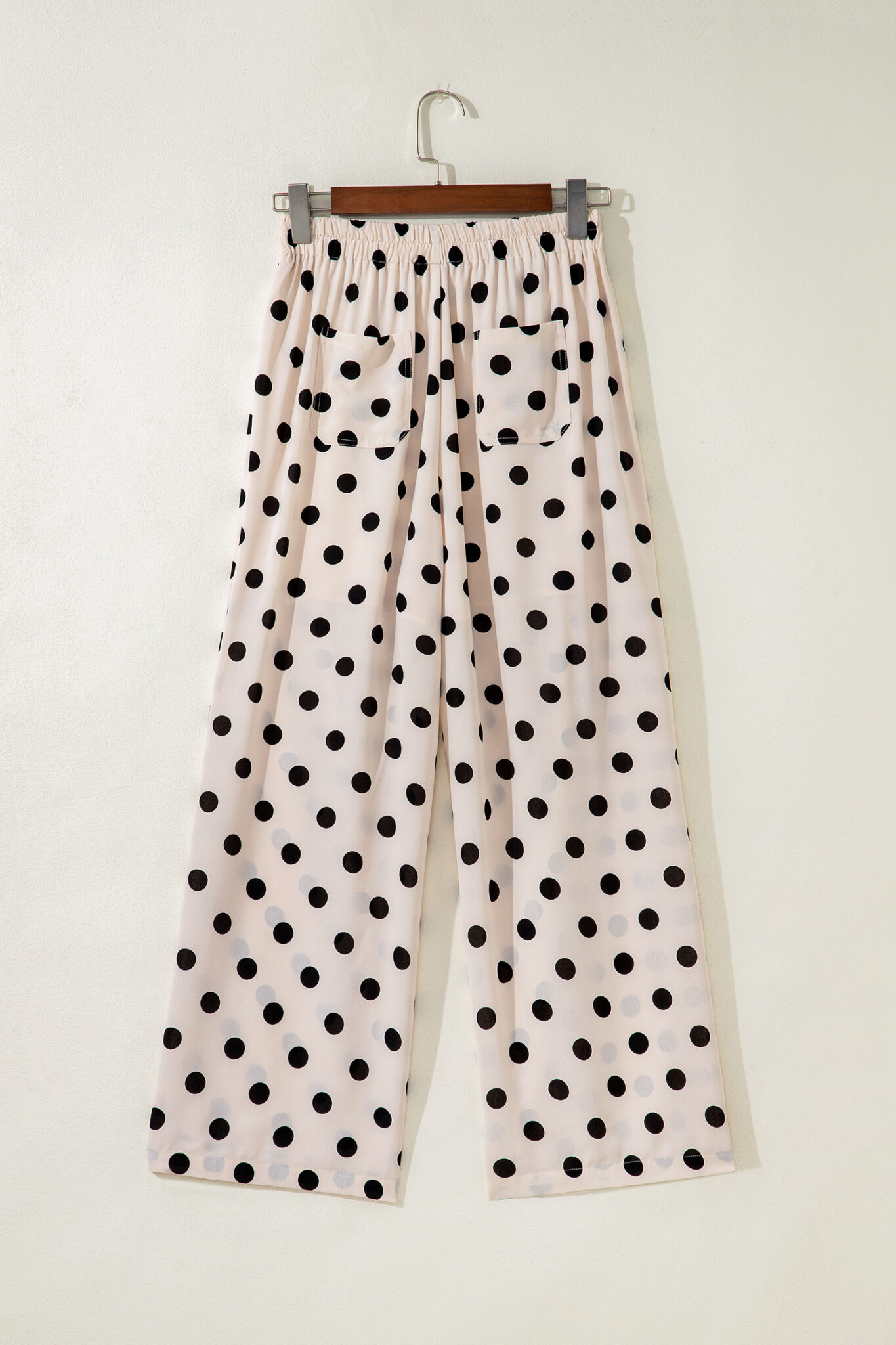White Polka Dot Print Patched Pocket Loose Pants
