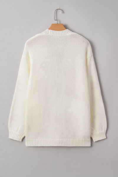 White Pumpkin Print Open Front Drop Shoulder Midi Cardigan