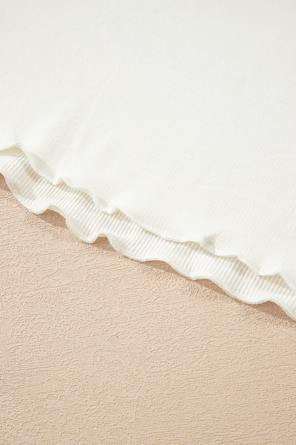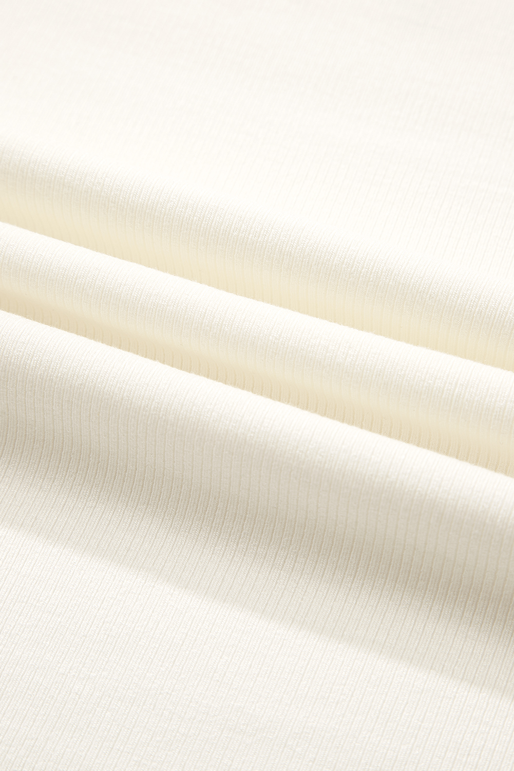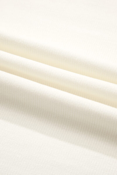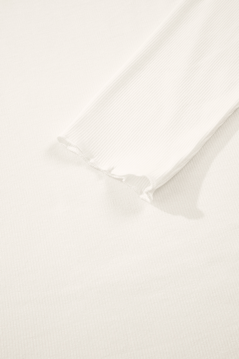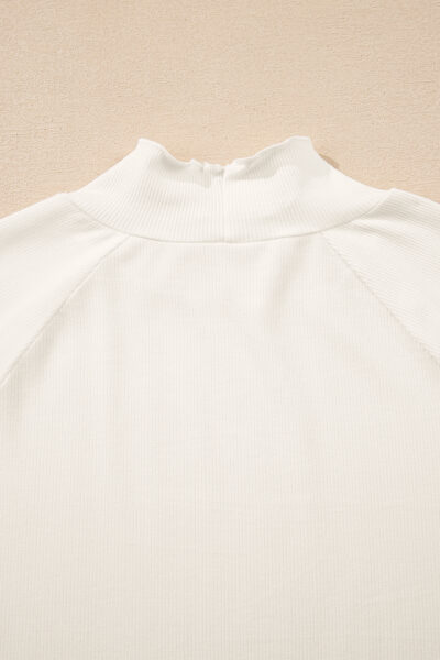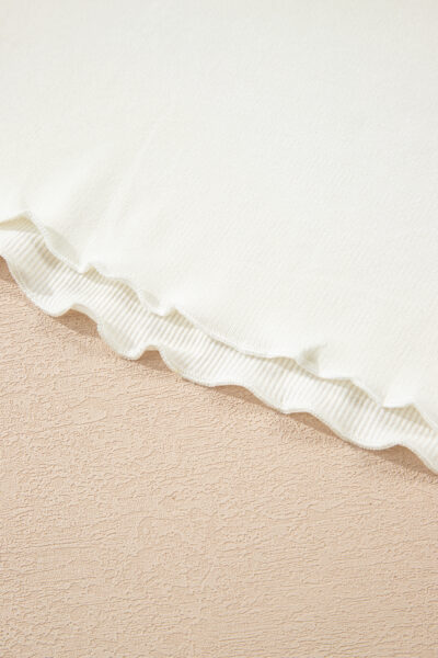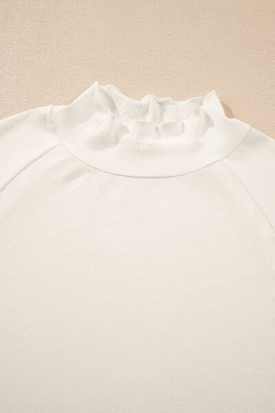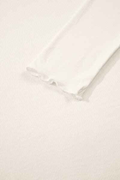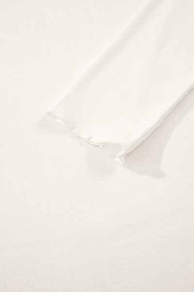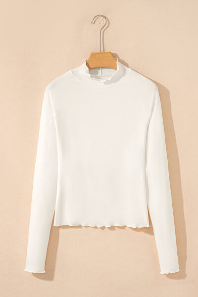 White Ribbed Knit Lettuce Trim High Neck Long Sleeve Top