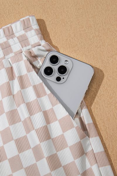 White Ribbed Texture Checkered Print 2pcs Tank and Pants Set