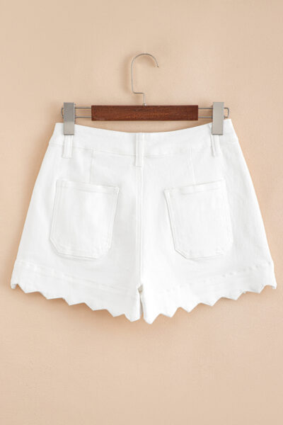 White Scalloped Hemline Acid Wash High Waist Denim Shorts
