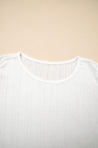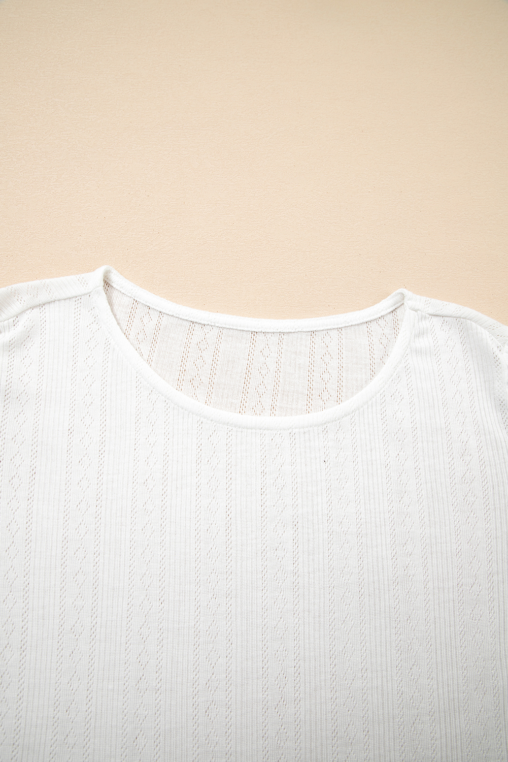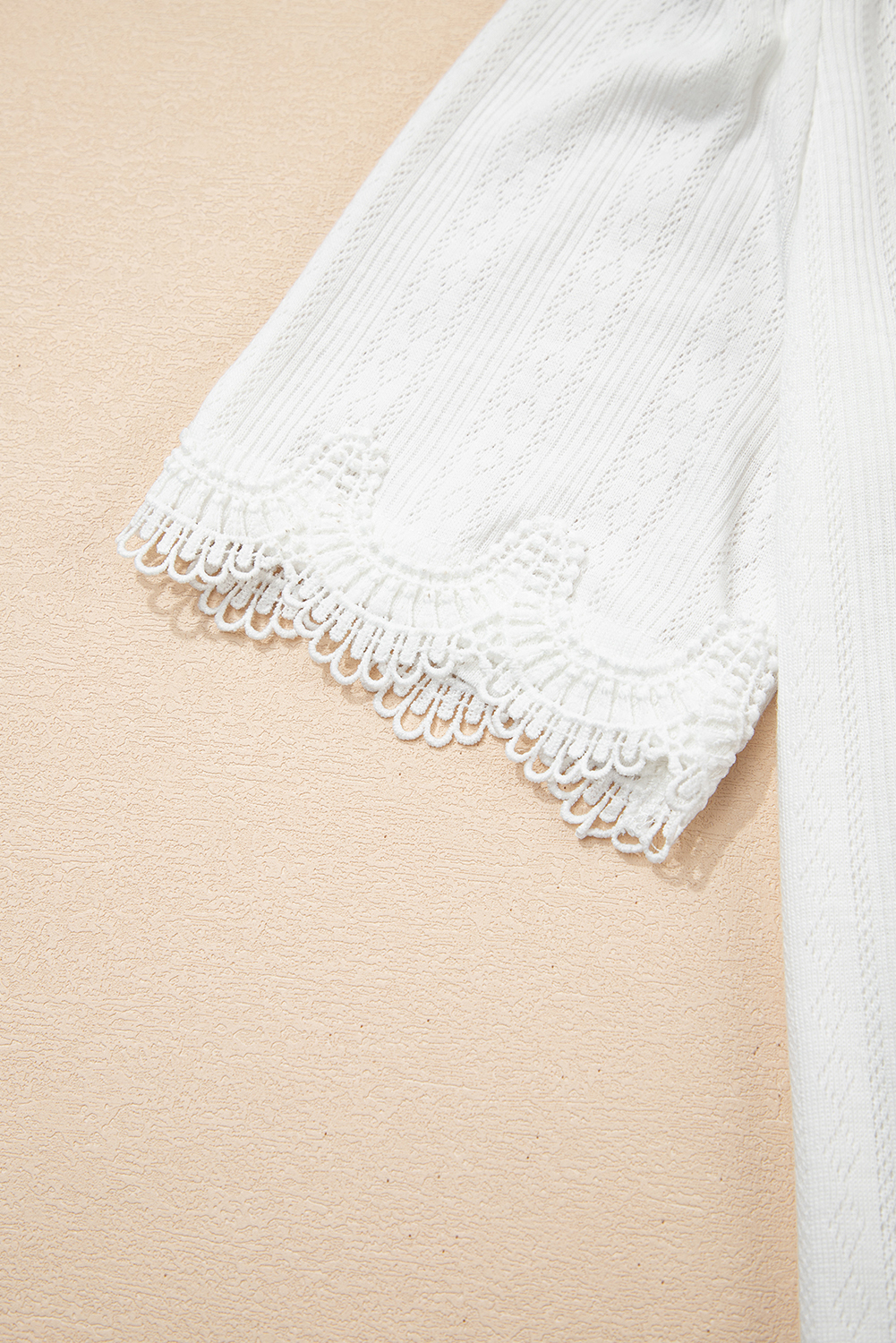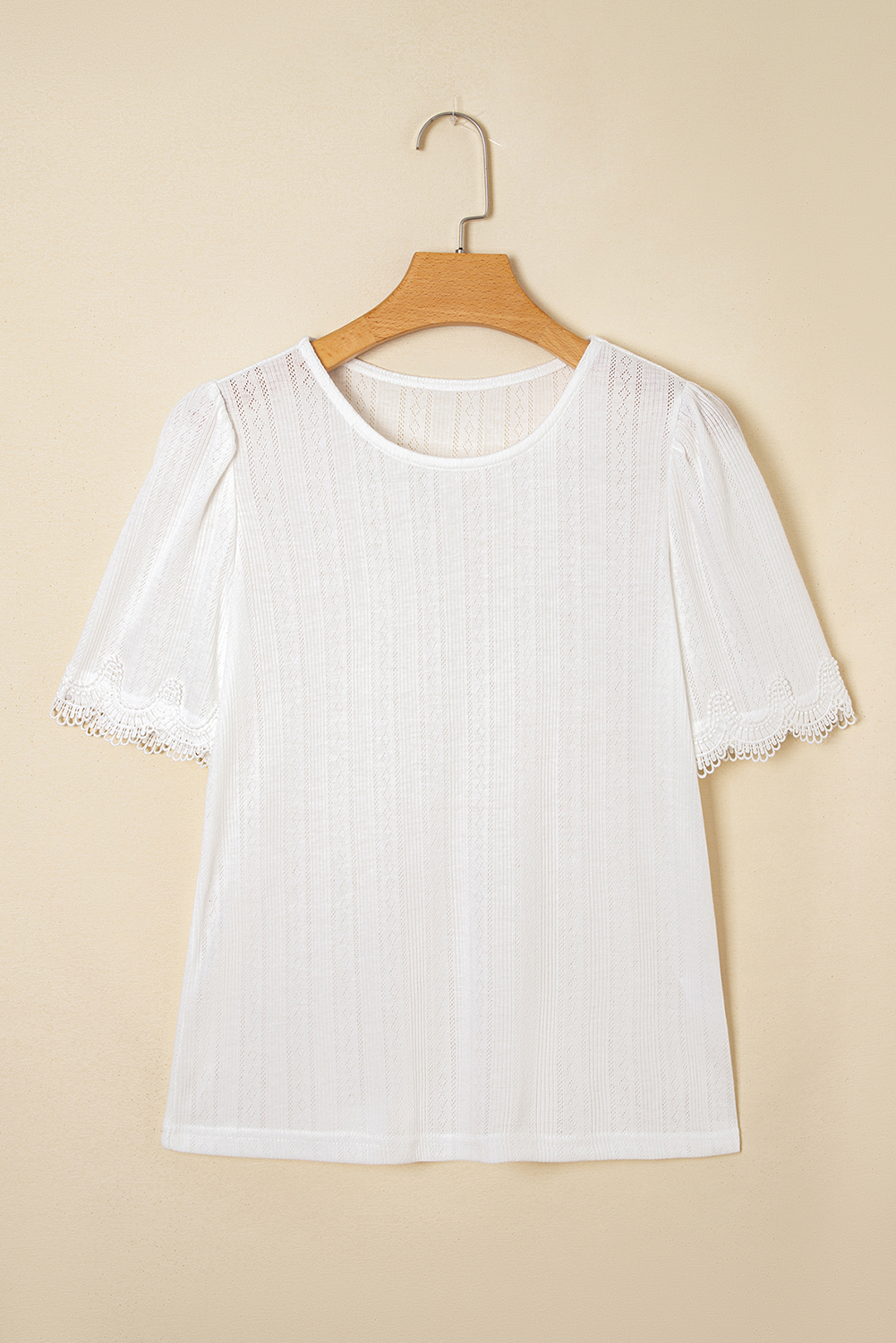 White Scalloped Lace Trim Jacquard Textured T Shirt