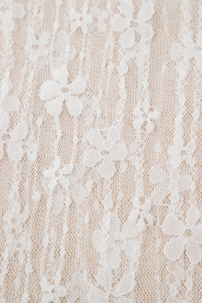 White Sheer Floral Lace Long Sleeve Slim Fit Top