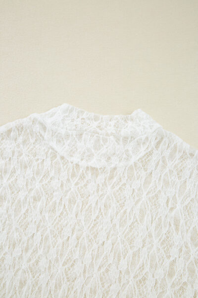 White Sheer Lace Bell Sleeve Mock Neck Blouse