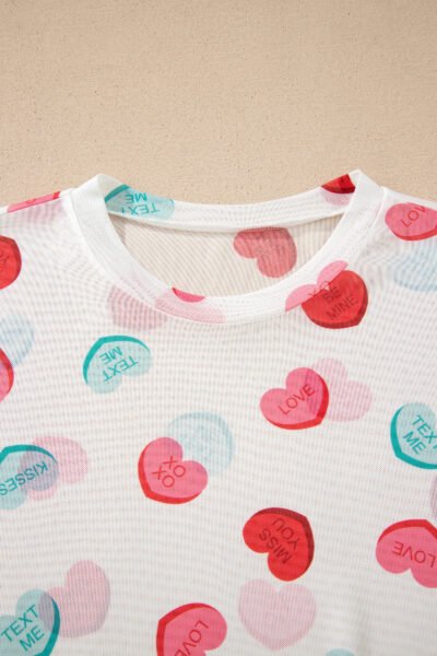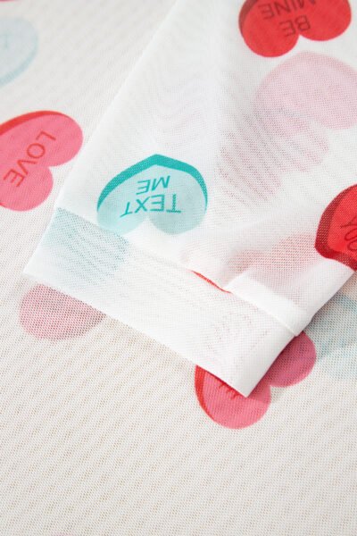 White Sheer Mesh Valentines Slogan Heart Printed Long Sleeve Top