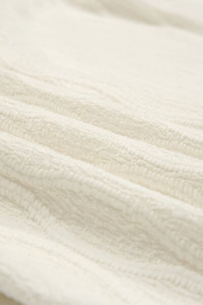 White Solid Color Textured Notched Neck Puff Sleeve Blouse