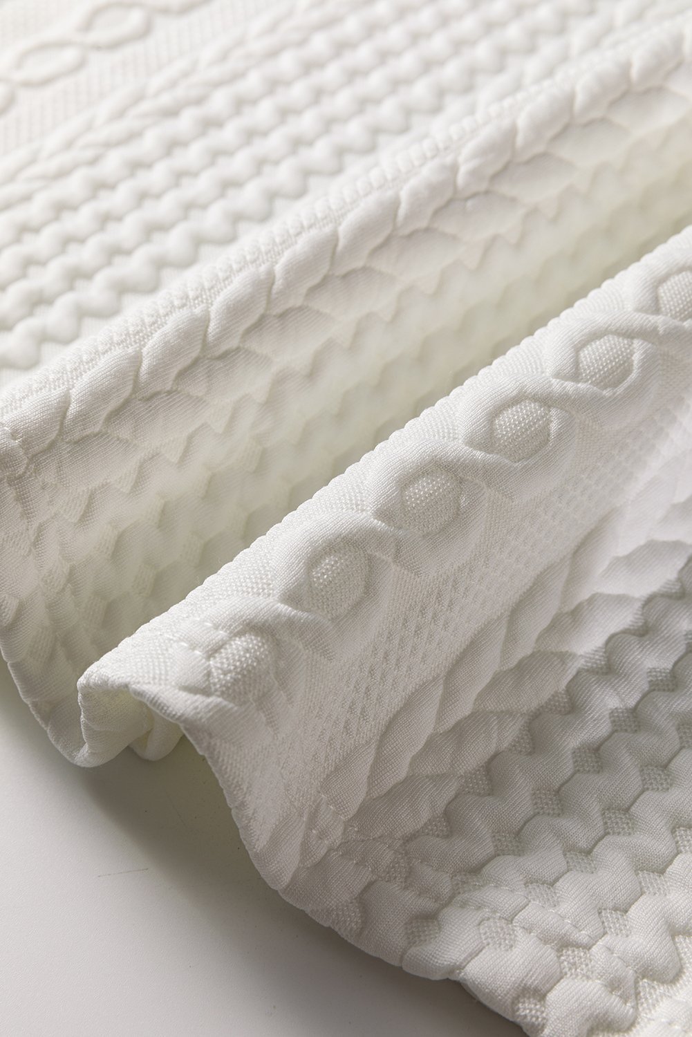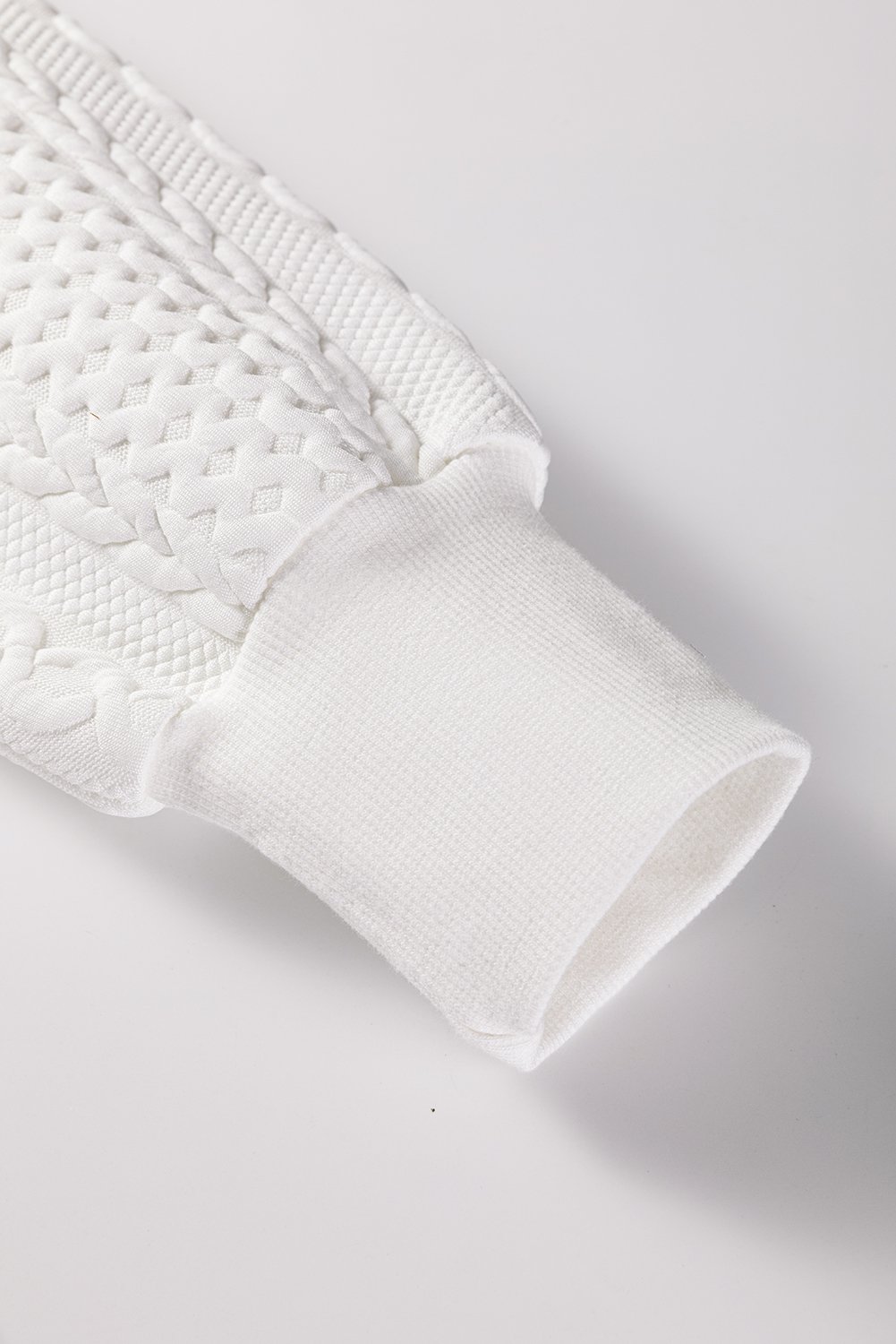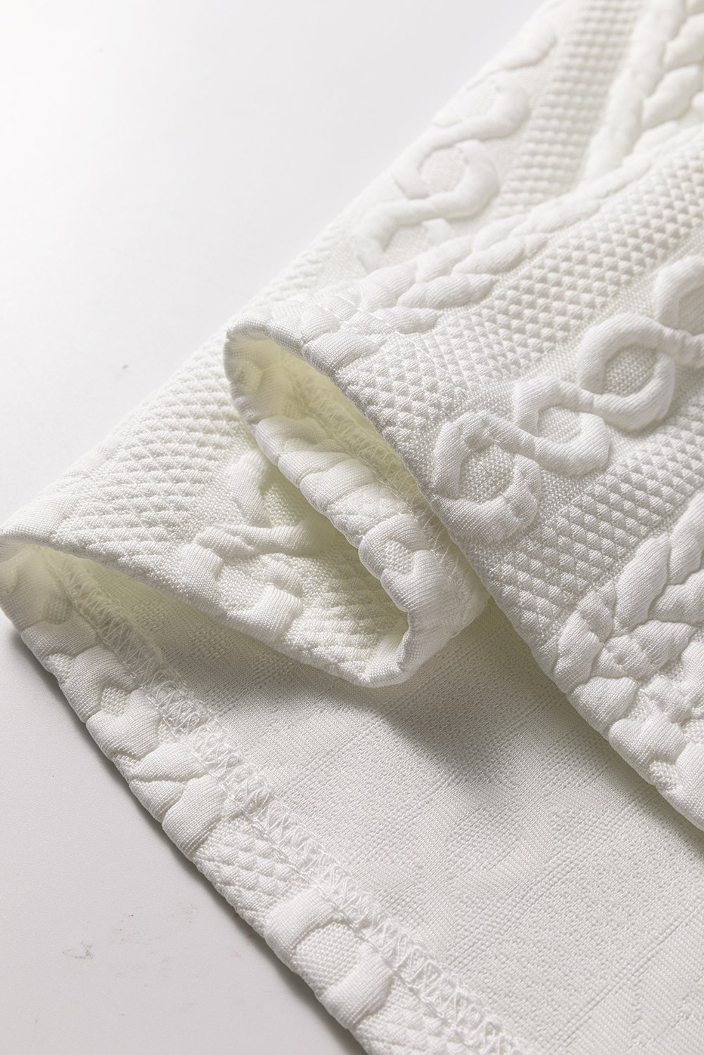 White Solid Color Textured V Neck Drop Shoulder Knit Top