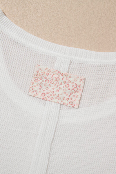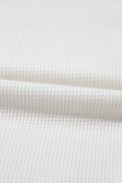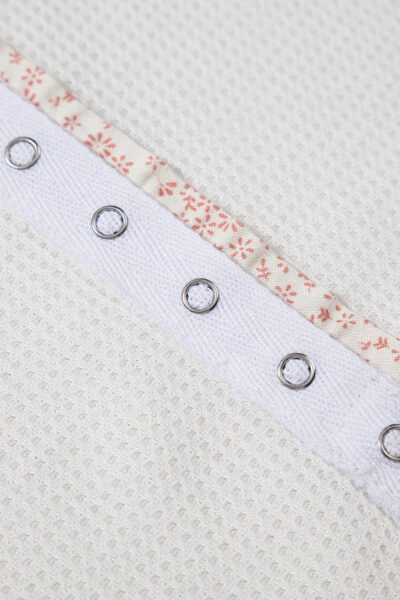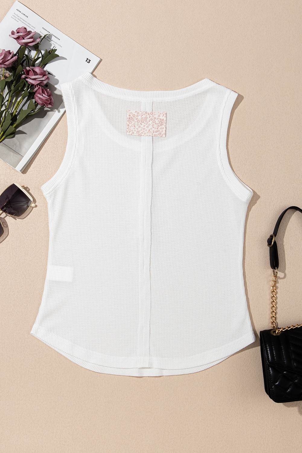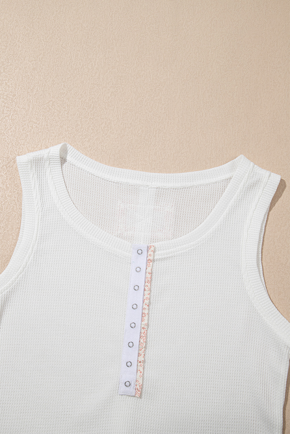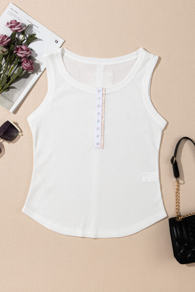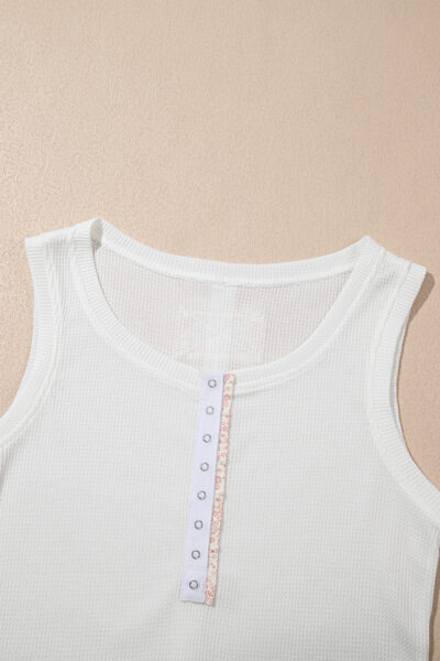 White Solid Color Waffle Knit Half Buttons Tank Top