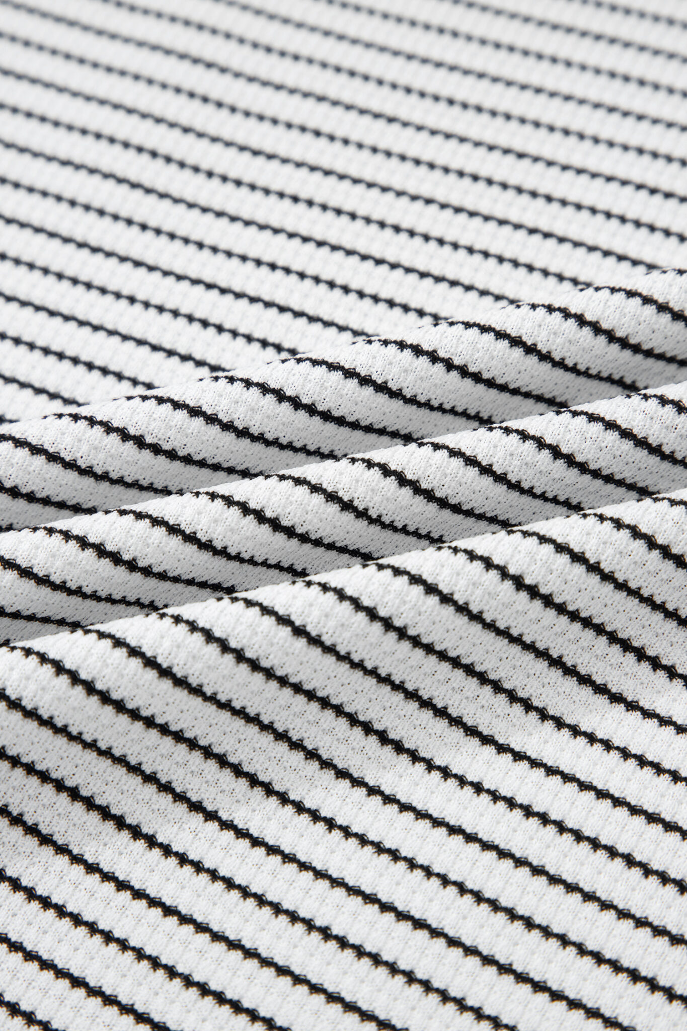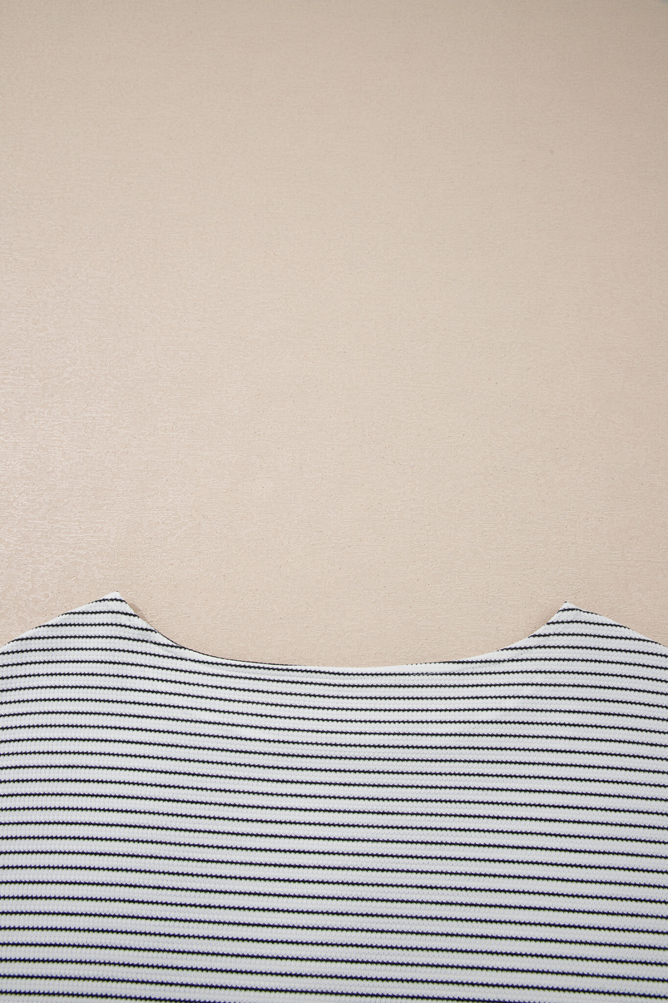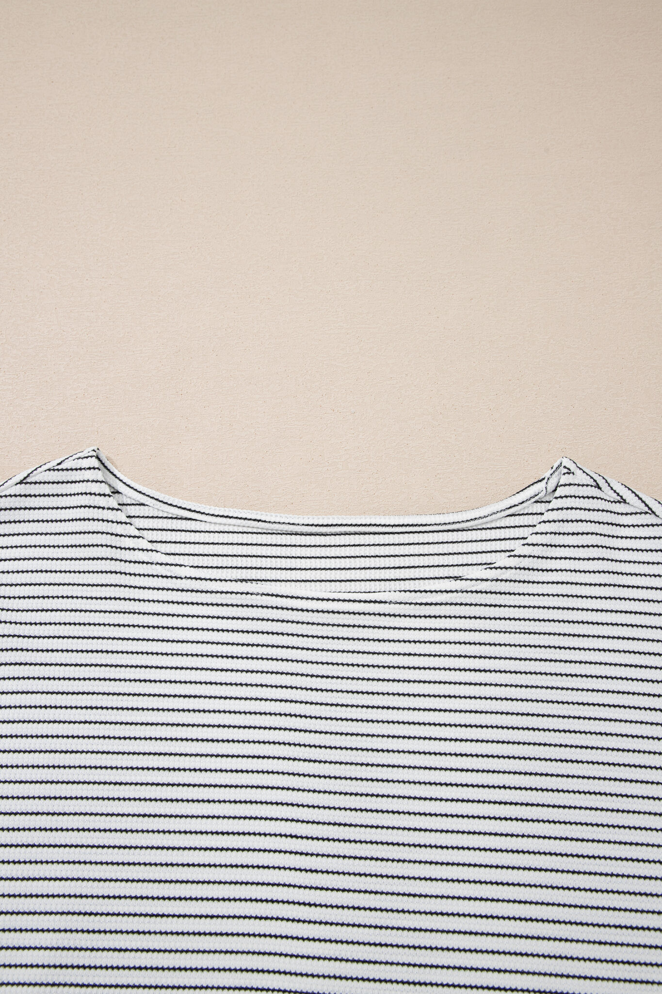 White Stripe Contrasted Ruffle Trim Loose Long Sleeve Top