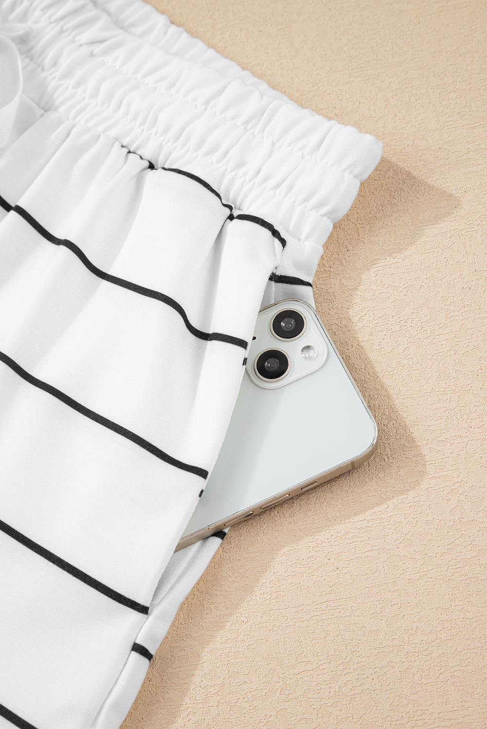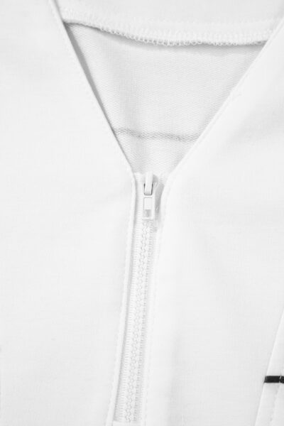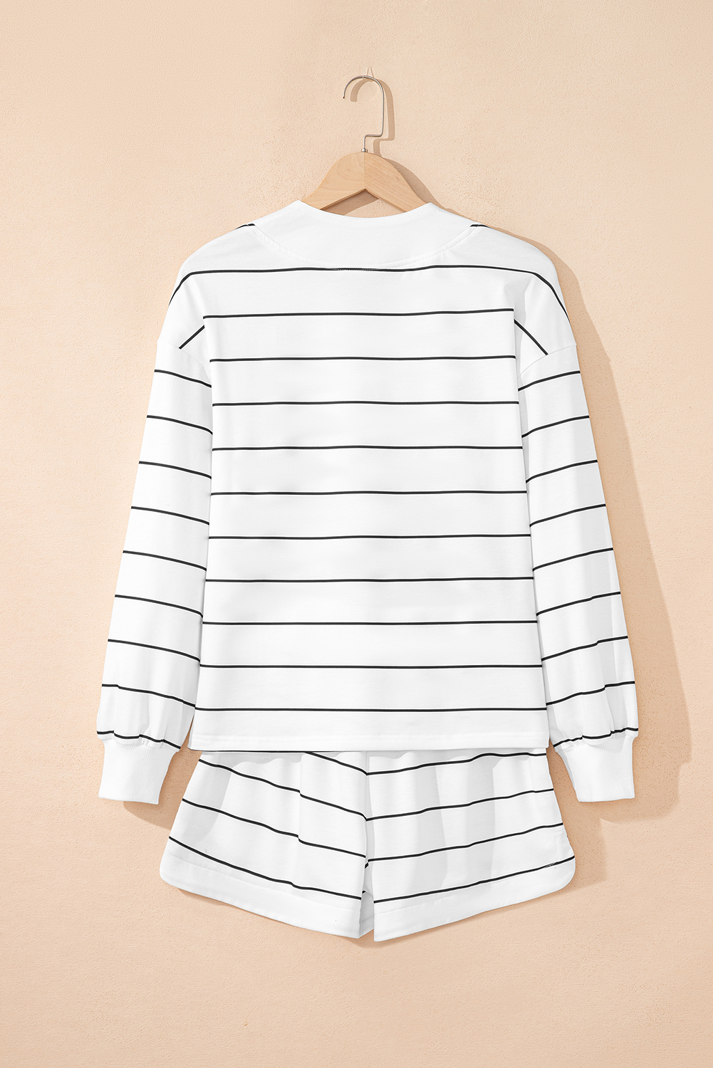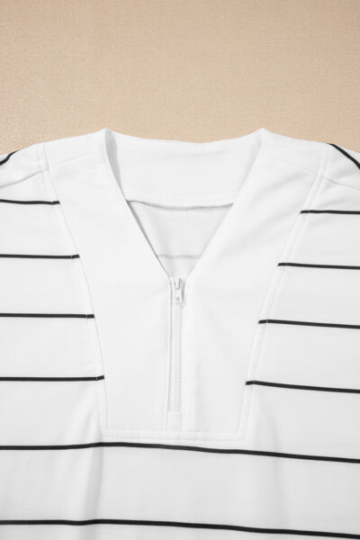 White Stripe Zip up Drop Shoulder Pullover and Short 2pcs Outfit