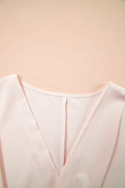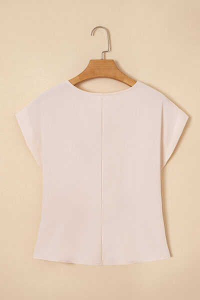 White Surplice V Neck Knotted Ruched Short Sleeve Peplum Blouse