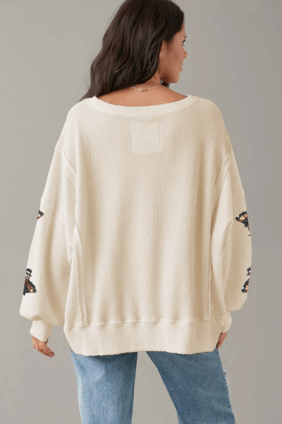 White Thanksgiving Turkey Waffle Oversized Knit Top
